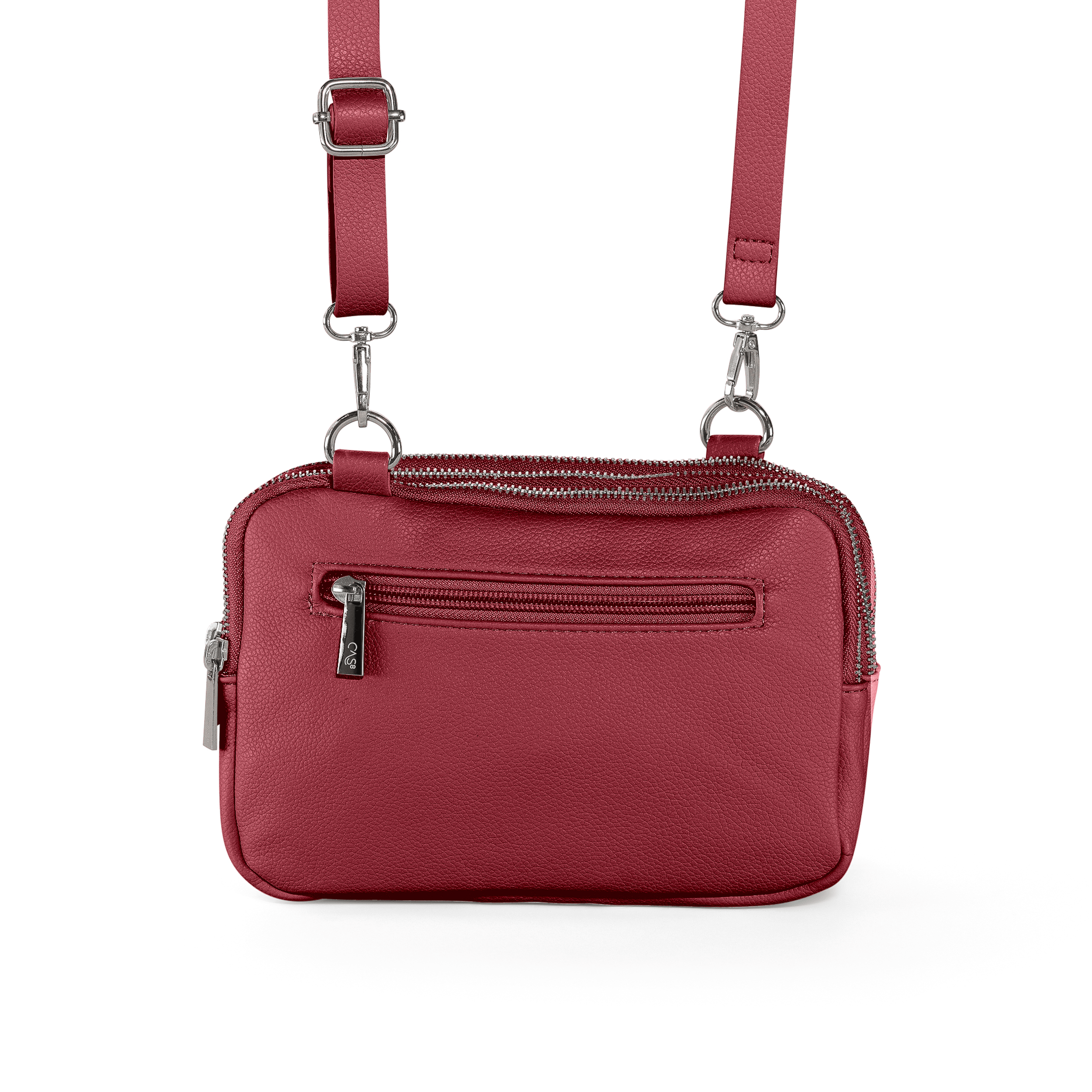 • Eine Vortasche mit Überschlag und Druckknopf und ein Reißverschlussfach auf der Rückseite für noch mehr Aufbewahrungsmöglichkeiten