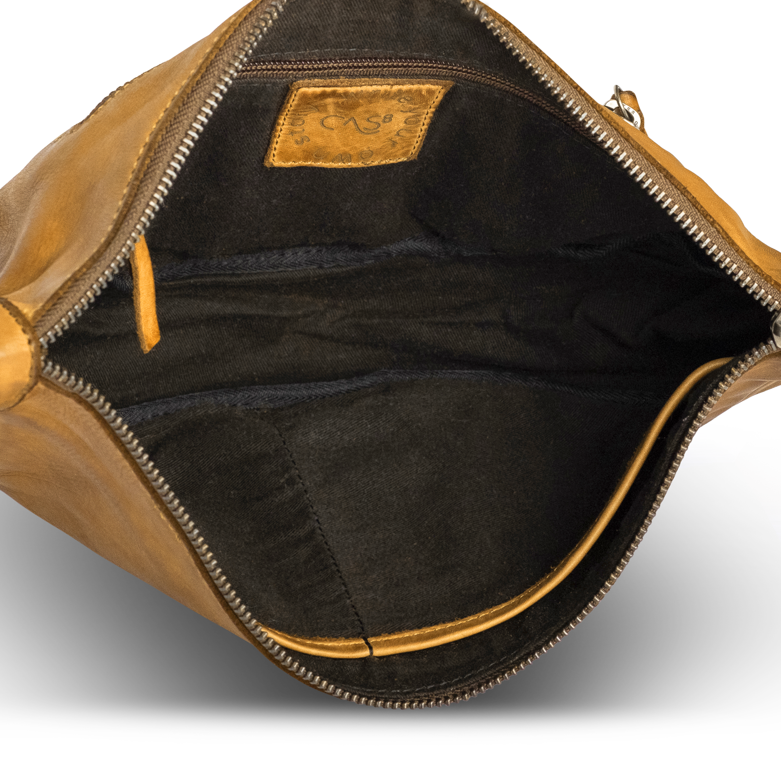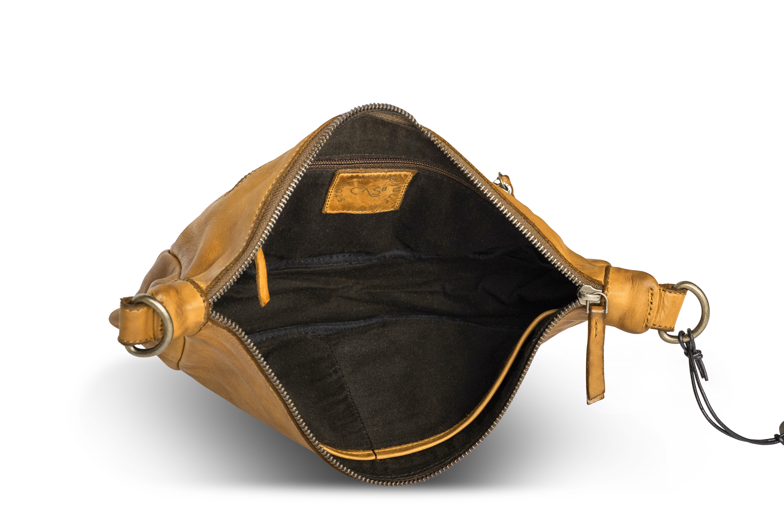 Kleine Moon Bag Lucy von Cas8: kompakte Damen Halbmondtasche aus weichem Echtleder mit praktischer Innenaufteilung und verstellbarem Schultergurt – ideal für den Alltag.