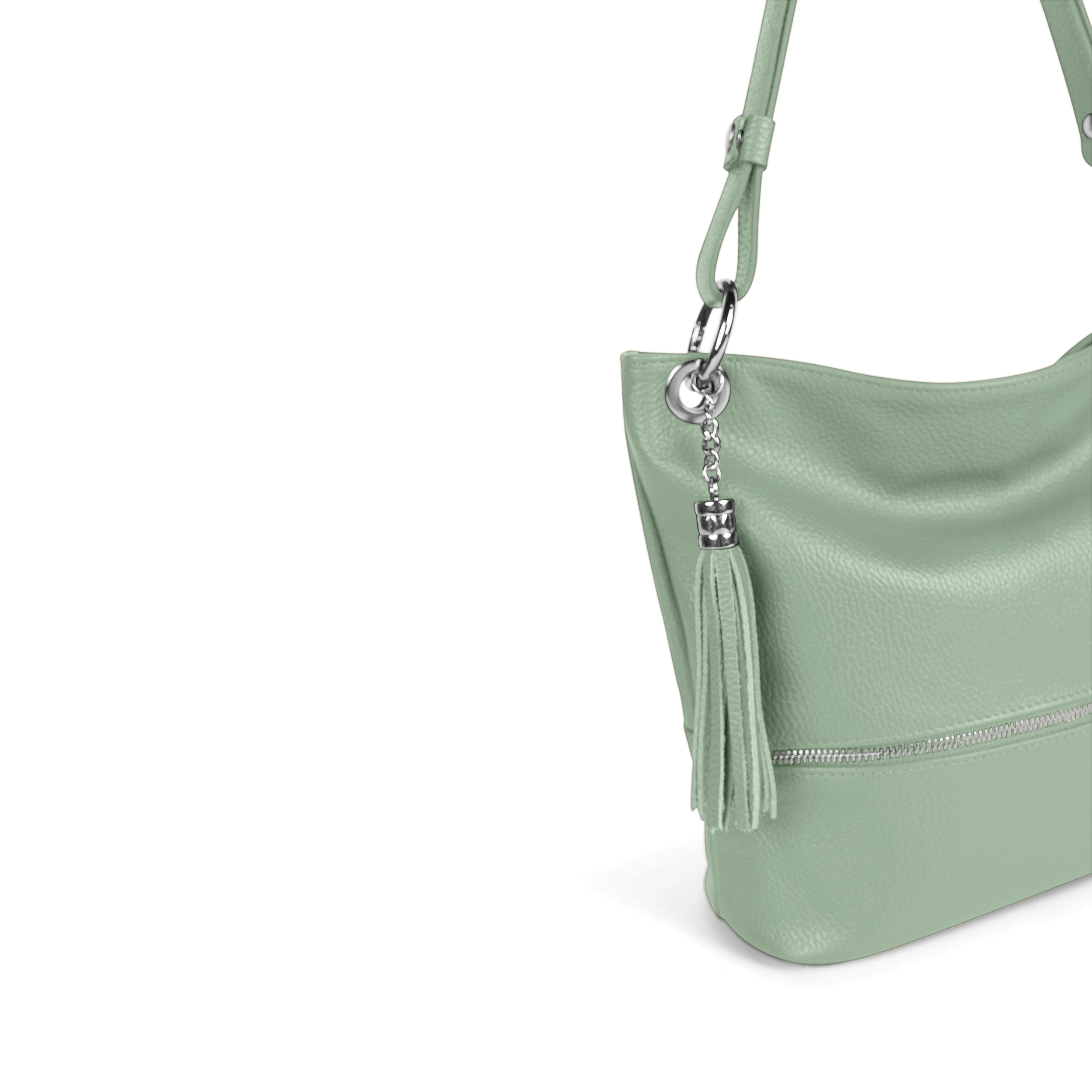 Der stilvolle Shopper Ornella von Cas8 bietet mit seinem geräumigen Hauptfach, mehreren praktischen Innen- und Außenfächern, einem abnehmbaren Schultergurt und einem eleganten Anhänger aus Lederstreifen und Kette sowohl Funktionalität als auch modischen Charme.