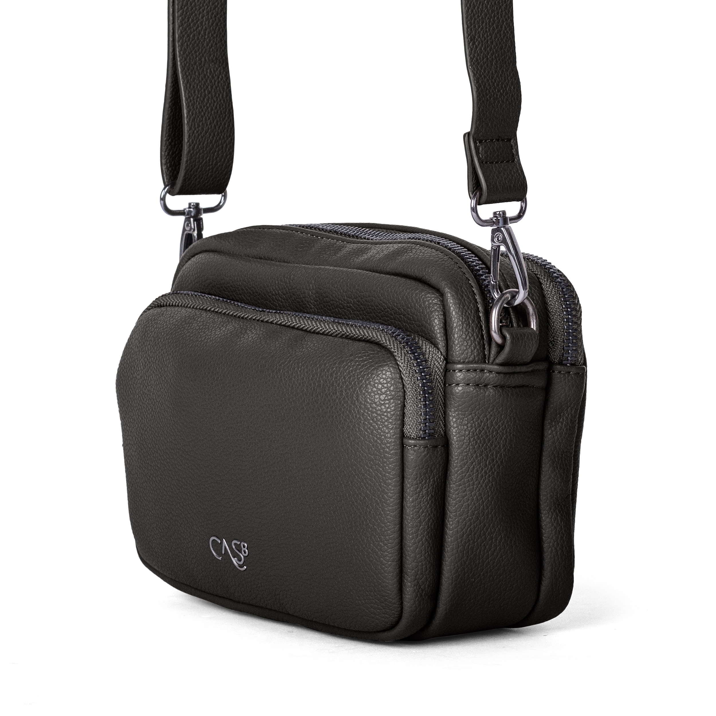 Die Cas8 Damenhandtasche ELLA 34001 überzeugt mit einer praktischen Fächereinteilung, eleganten Gun-Metall-Reißverschlüssen und einem flexiblen, abnehmbaren Schultergurt – gefertigt aus robustem, veganem PU-Material.