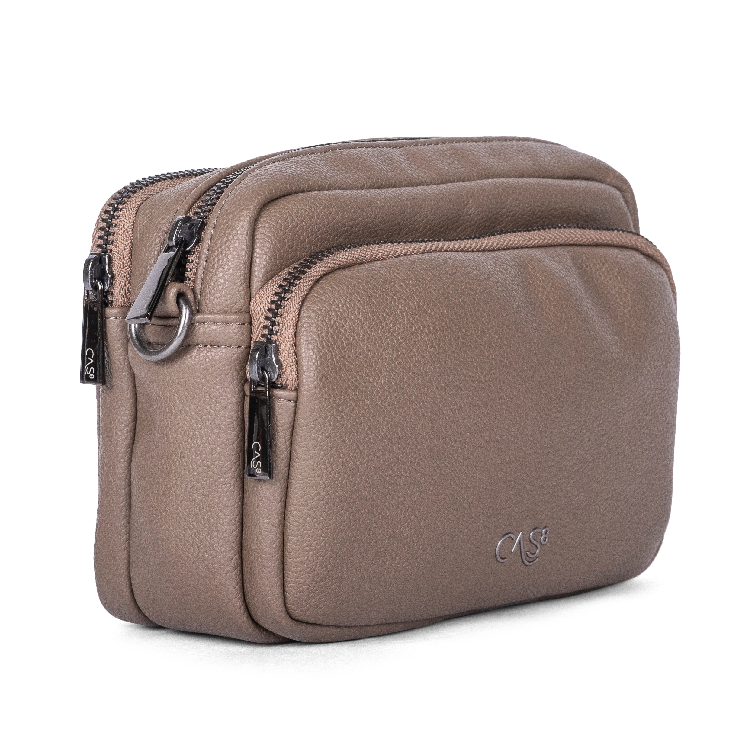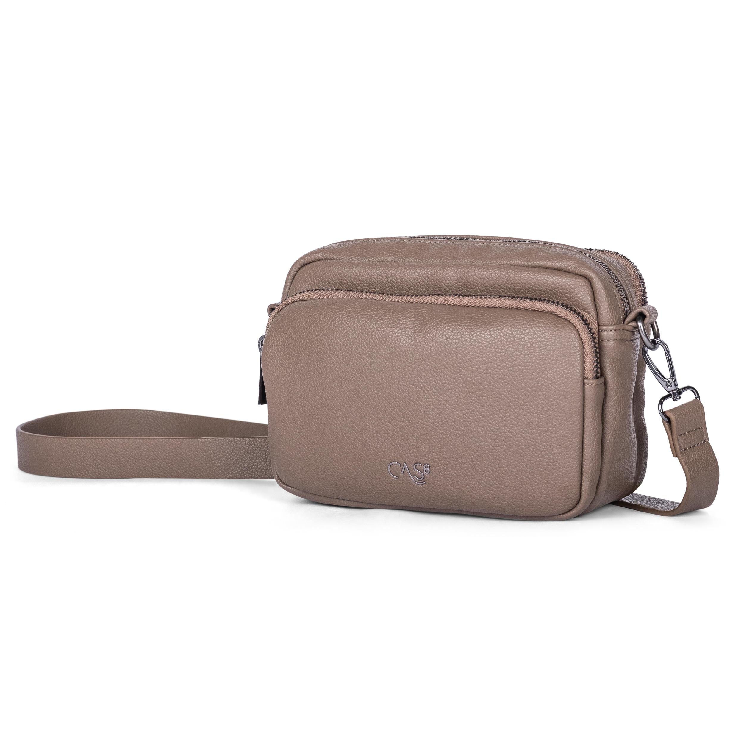 Die Cas8 Damenhandtasche ELLA 34001 überzeugt mit einer praktischen Fächereinteilung, eleganten Gun-Metall-Reißverschlüssen und einem flexiblen, abnehmbaren Schultergurt – gefertigt aus robustem, veganem PU-Material.