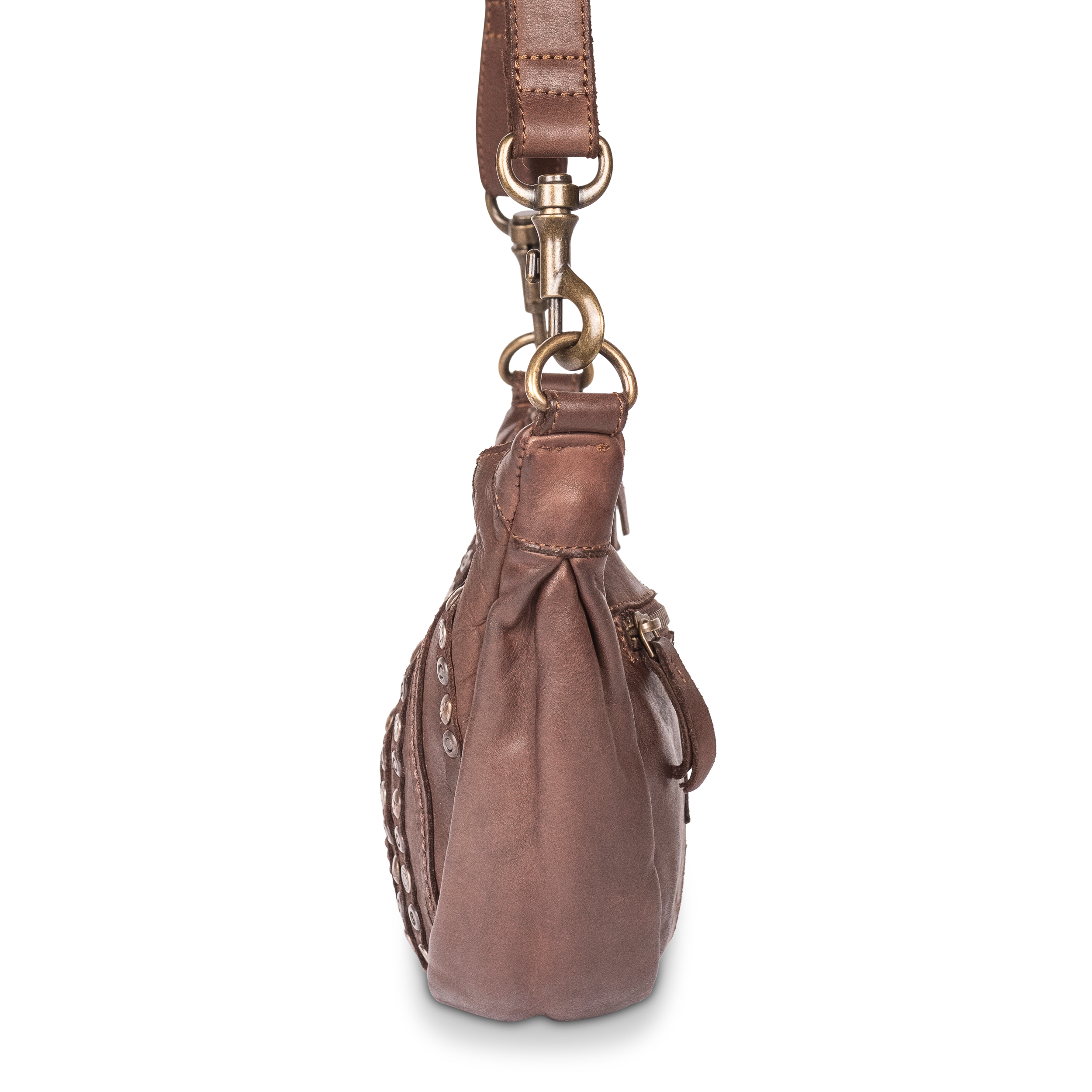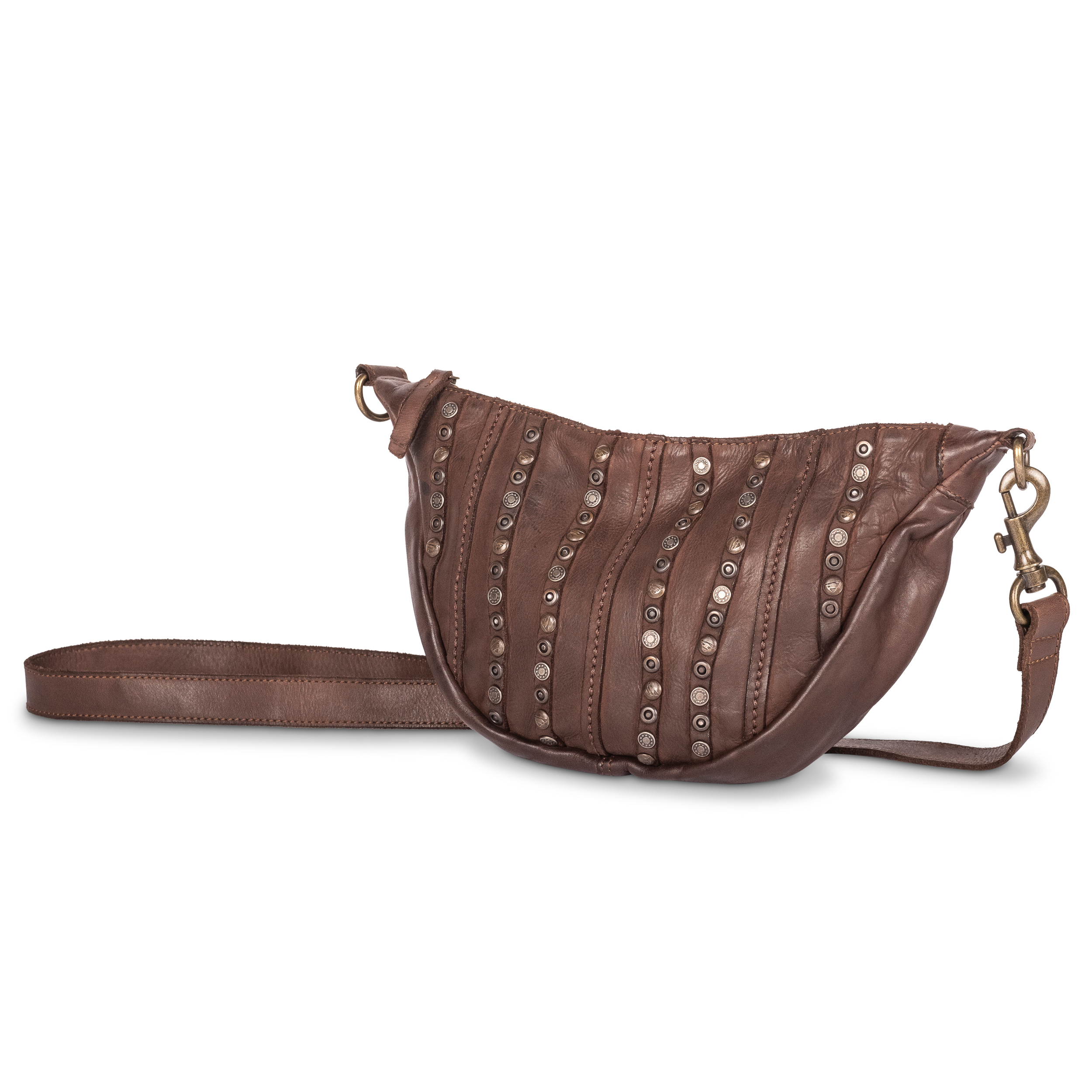 Cas8 Moon Bag klein NELLI - special Edition - aus echtem Leder mit Nieten, Damen Umhängetasche für den Alltag, längenverstellbarer Schultergurt, robuste Verarbeitung, stilvolle Half Moon Tasche