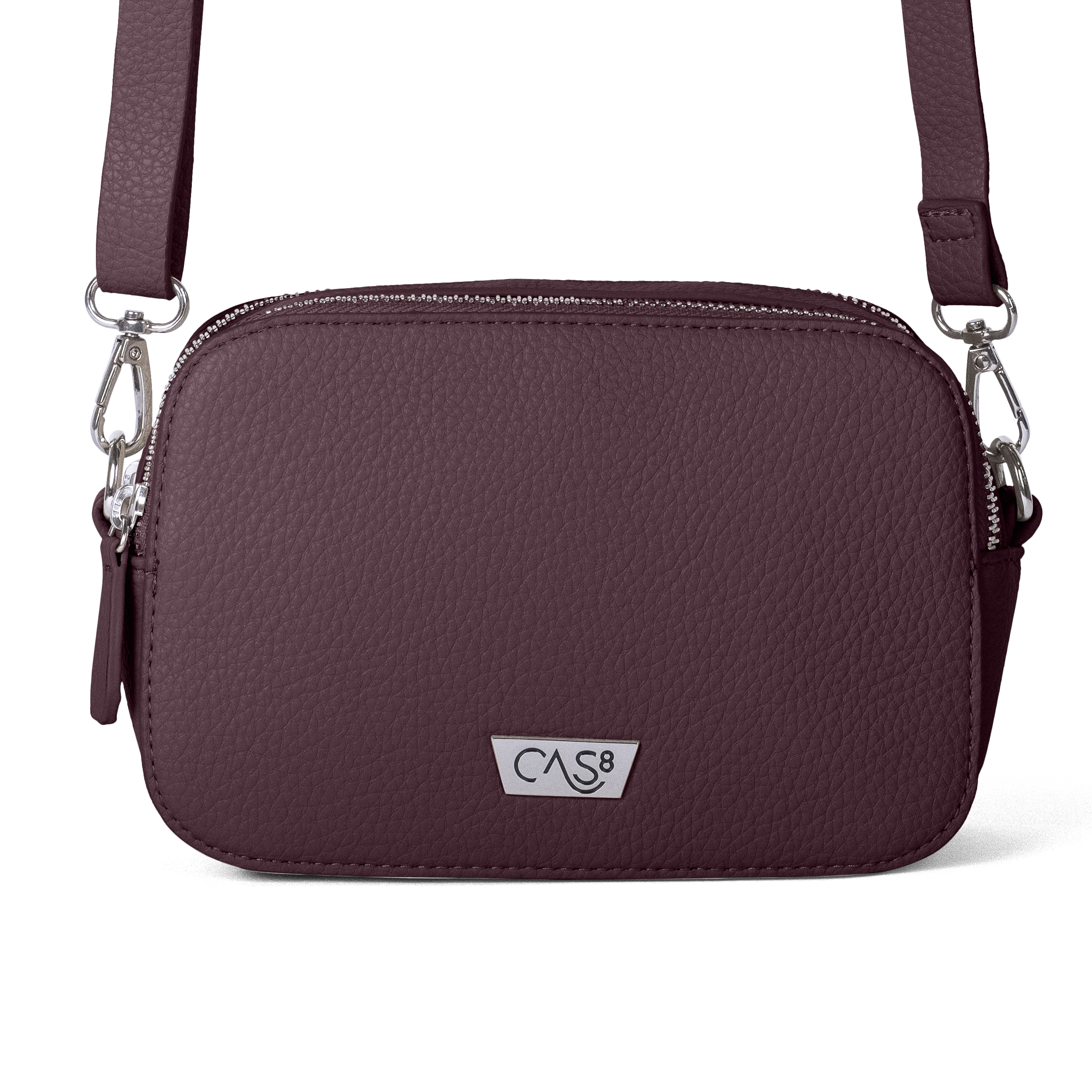 Cas8 Umhängetasche für Damen JULIA 3400 – Kompakte PU Tasche, Leicht und Robust, 2 Reißverschluss-Hauptfächer, Abnehmbarer und Längenverstellbarer Schultergurt, schlichte Crossbody Bag