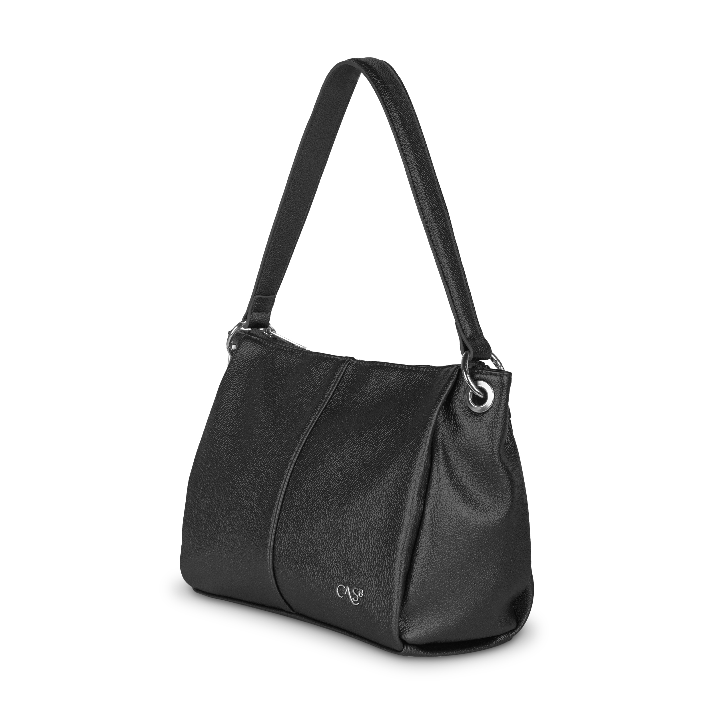 Cas8 Handtasche ELLA 34506 - Mit dieser mittelgroßen Umhängetasche (31 x 21 x 12 cm) in edler Metallic-Optik sind Sie stets perfekt ausgerüstet – ob beim täglichen Stadtbummel oder an einem stilvollen Abend. Das durchdachte Design der eleganten Tasche bietet ein praktisches Innenfach mit Reißverschluss sowie zwei Steckfächer für eine übersichtliche Aufbewahrung, zum Beispiel von Smartphone oder Schlüssel. Ein weiteres Reißverschlussfach auf der Rückseite der Damentasche sorgt für zusätzlichen Stauraum. Der abnehmbare und längenverstellbare Umhängegurt der Tasche sowie der kürzere Schultergurt bieten flexible Tragemöglichkeiten. So kann sie sportlich als Crossbody oder elegant über der Schulter getragen werden.