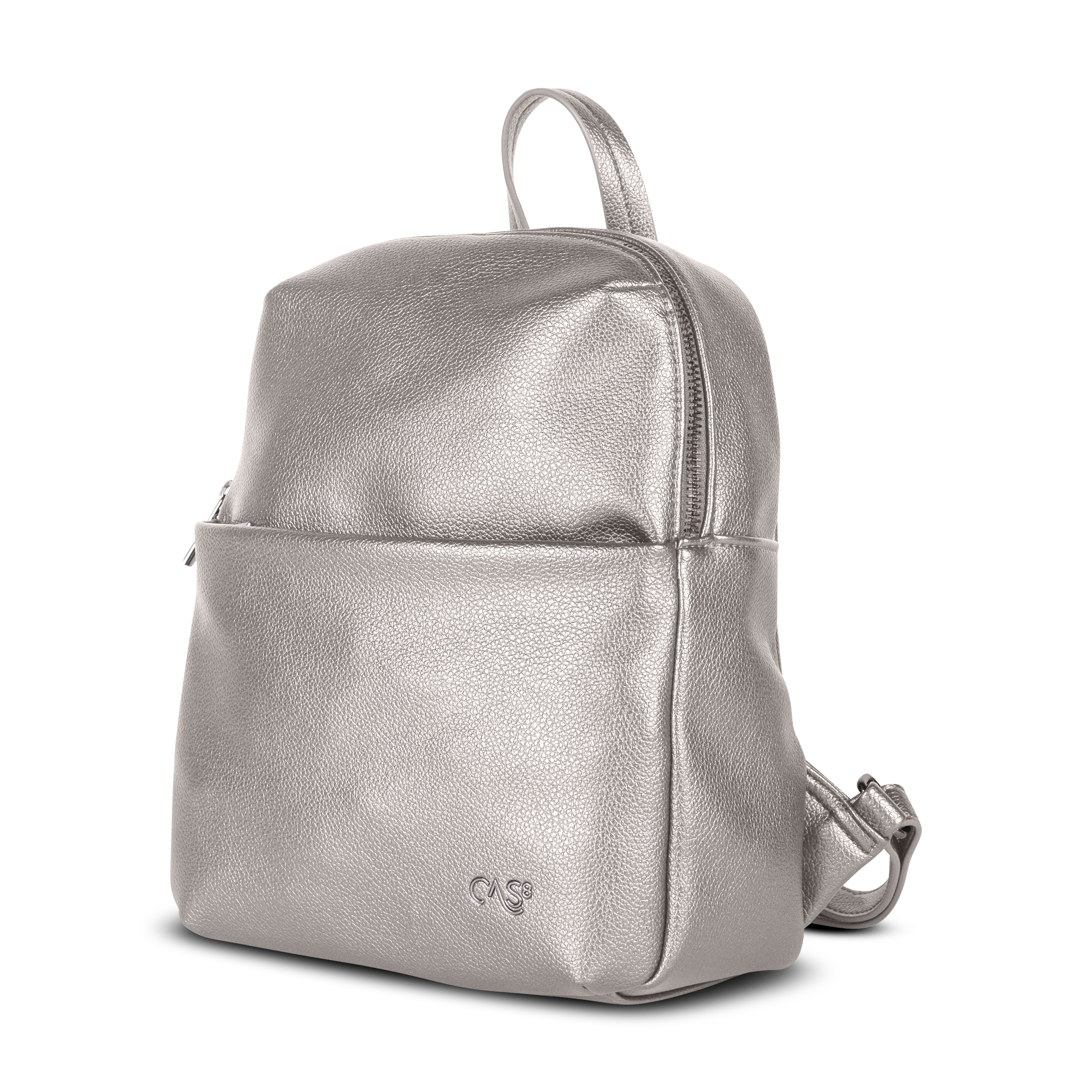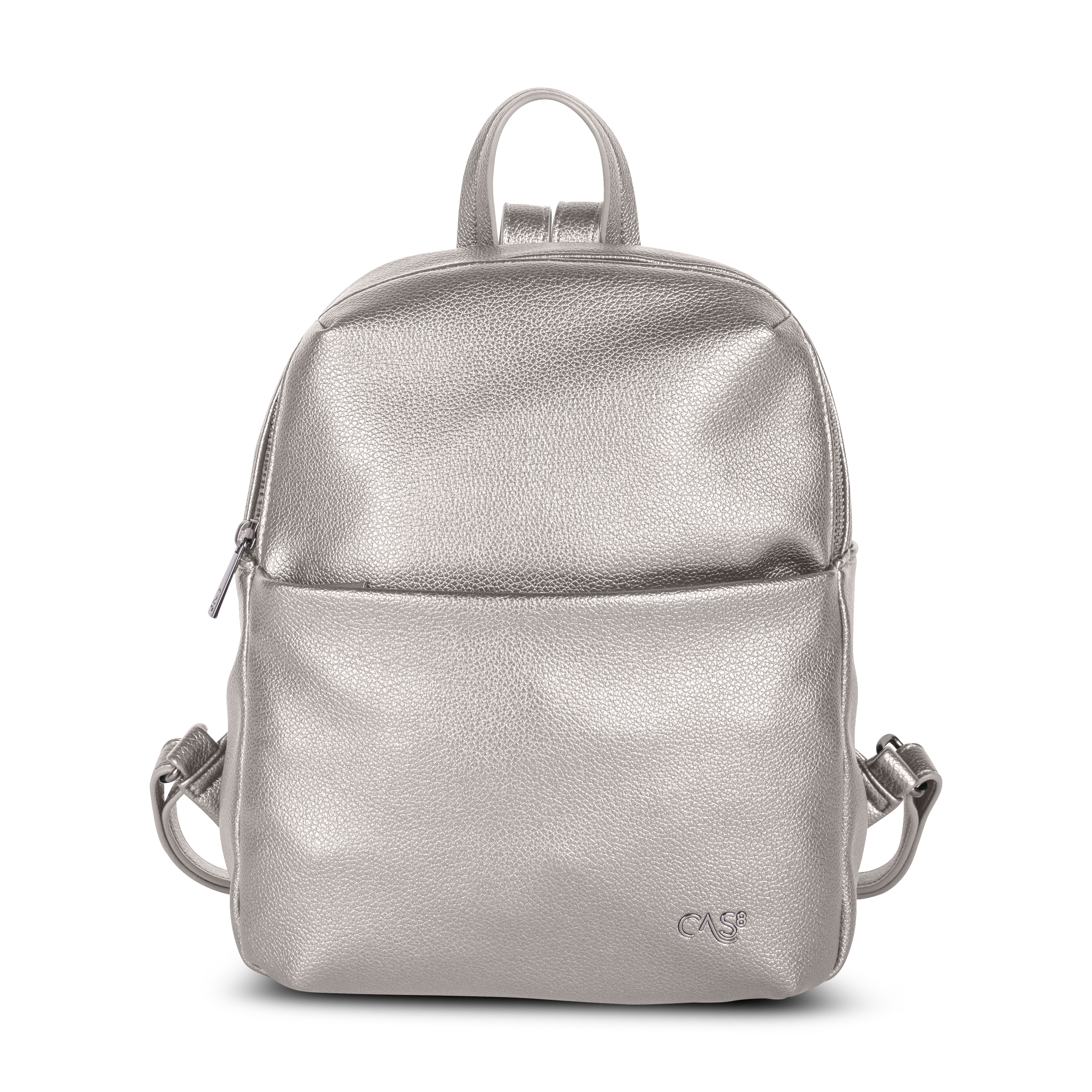 Der kompakte Cas8 City-Rucksack ELLA 30750 (23 x 28,5 x 11 cm) kombiniert eleganten Metallic-Chic mit cleverer Aufteilung – inklusive Front- und Rückfach mit Reißverschluss sowie praktischen Innenfächern für stilvollen Komfort im urbanen Alltag.
