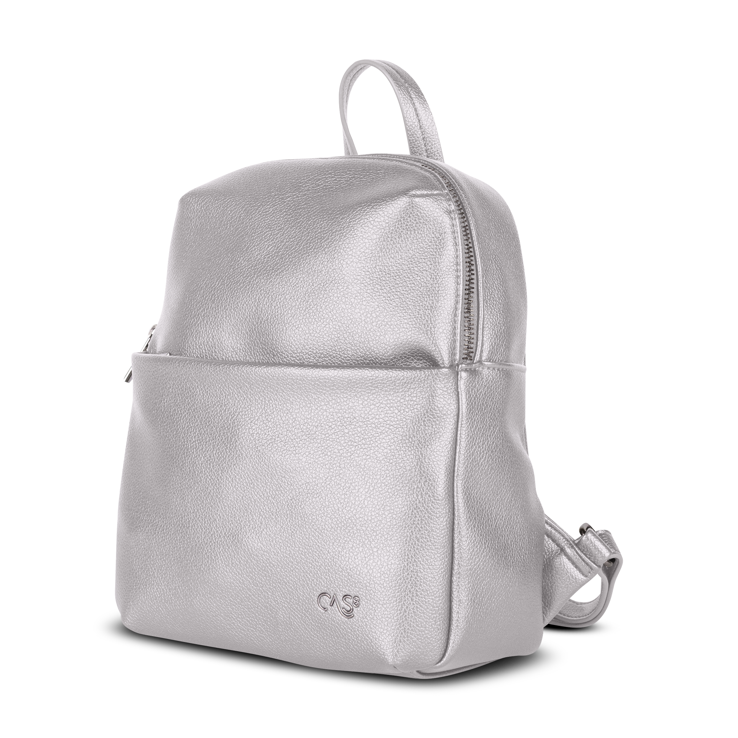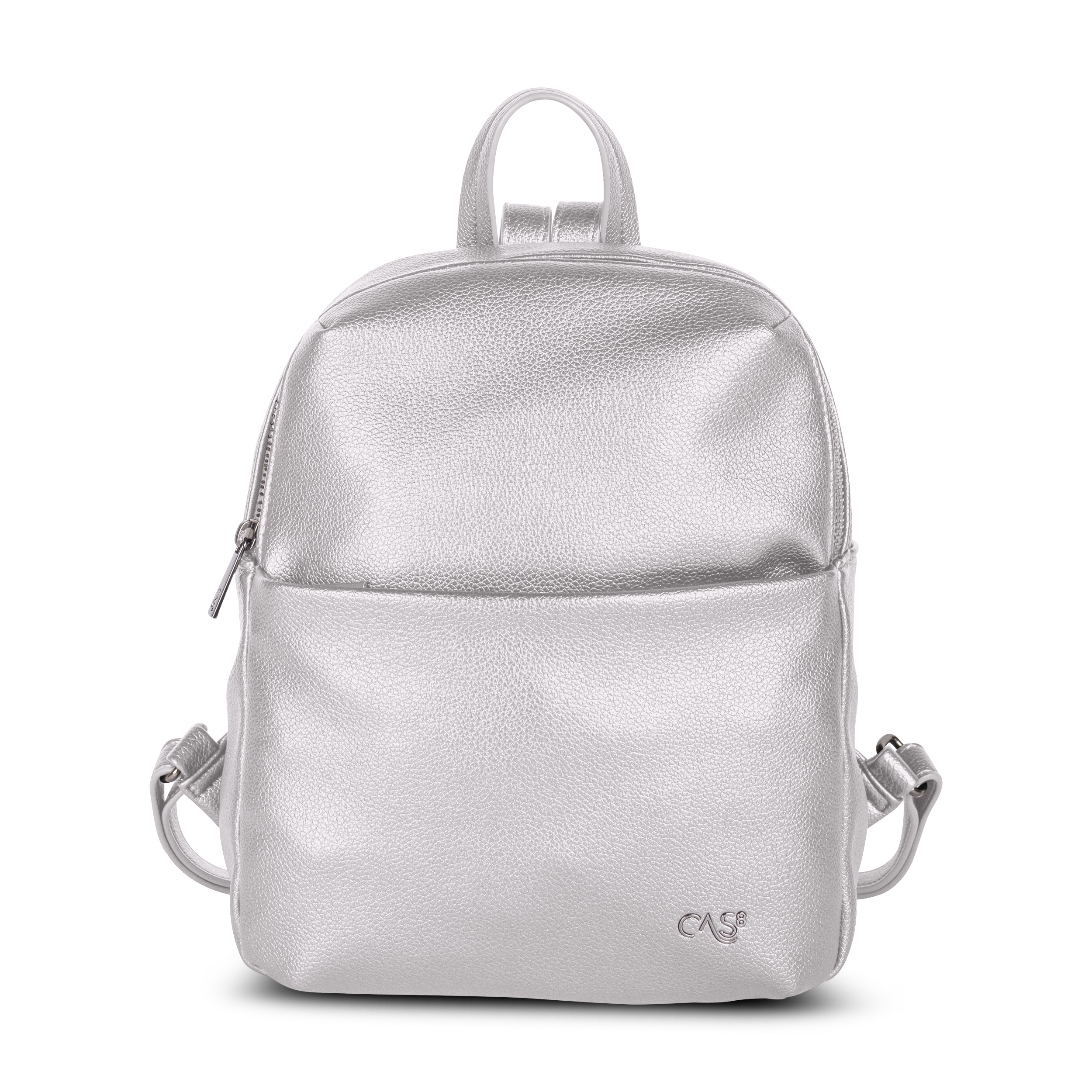 Der kompakte Cas8 City-Rucksack ELLA 30750 (23 x 28,5 x 11 cm) kombiniert eleganten Metallic-Chic mit cleverer Aufteilung – inklusive Front- und Rückfach mit Reißverschluss sowie praktischen Innenfächern für stilvollen Komfort im urbanen Alltag.