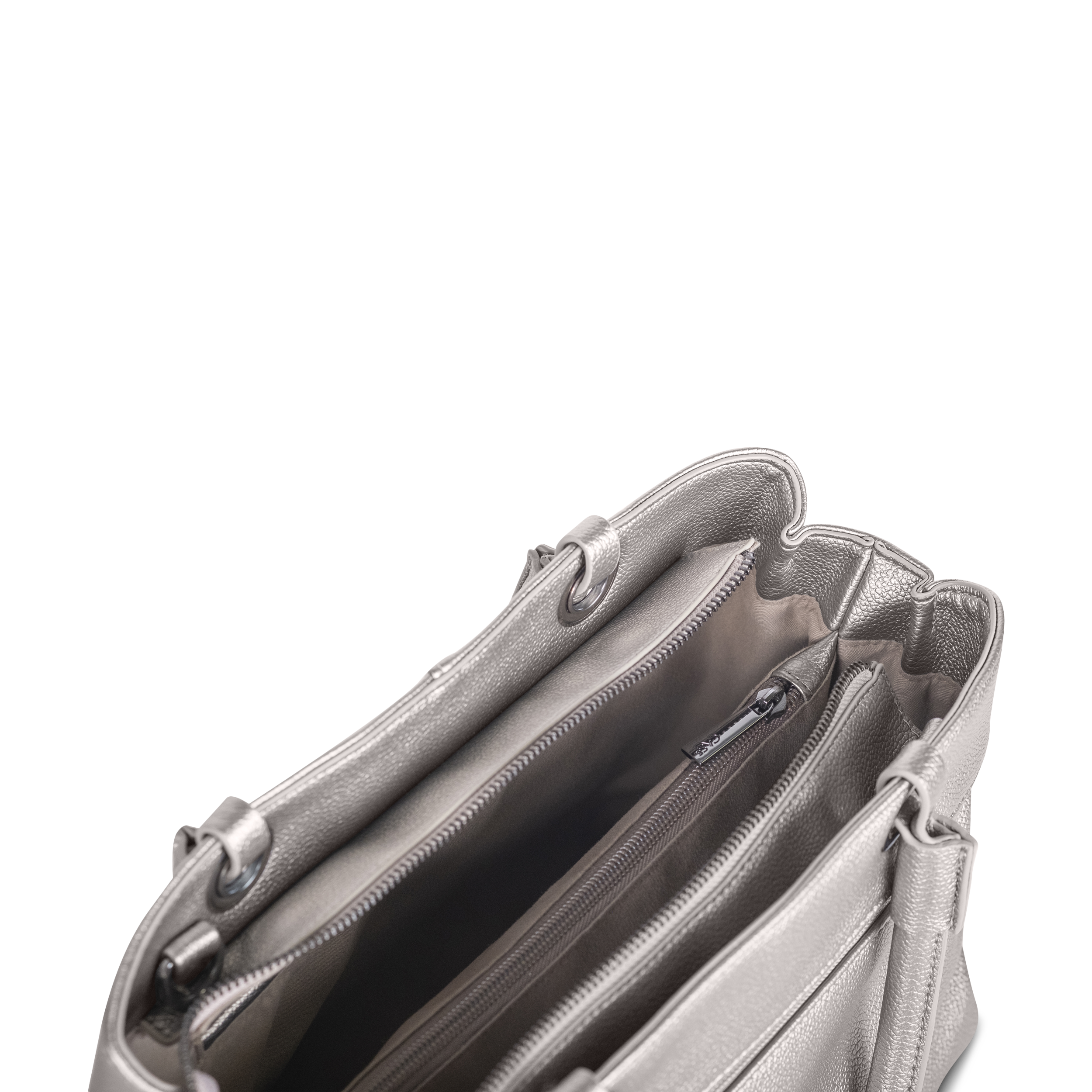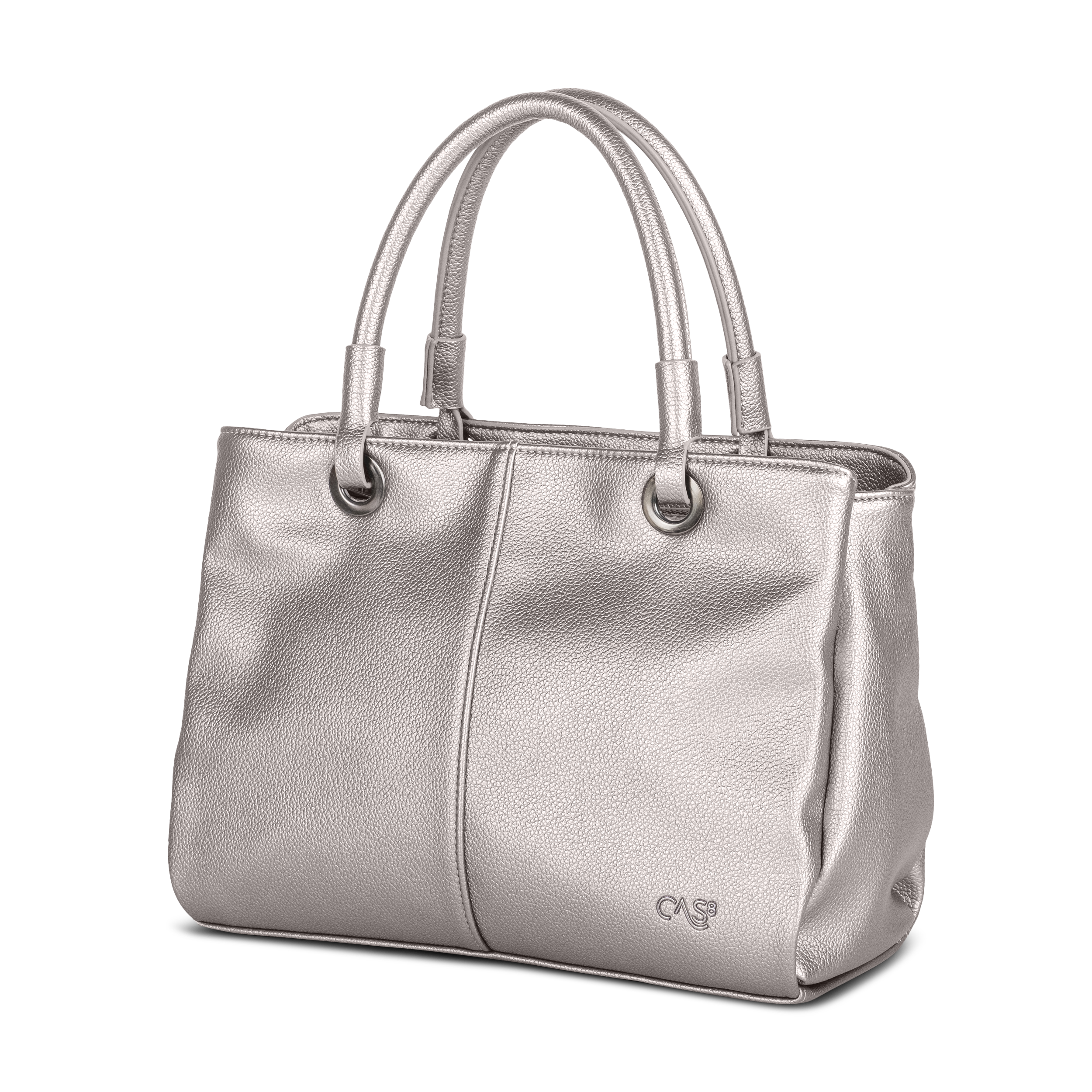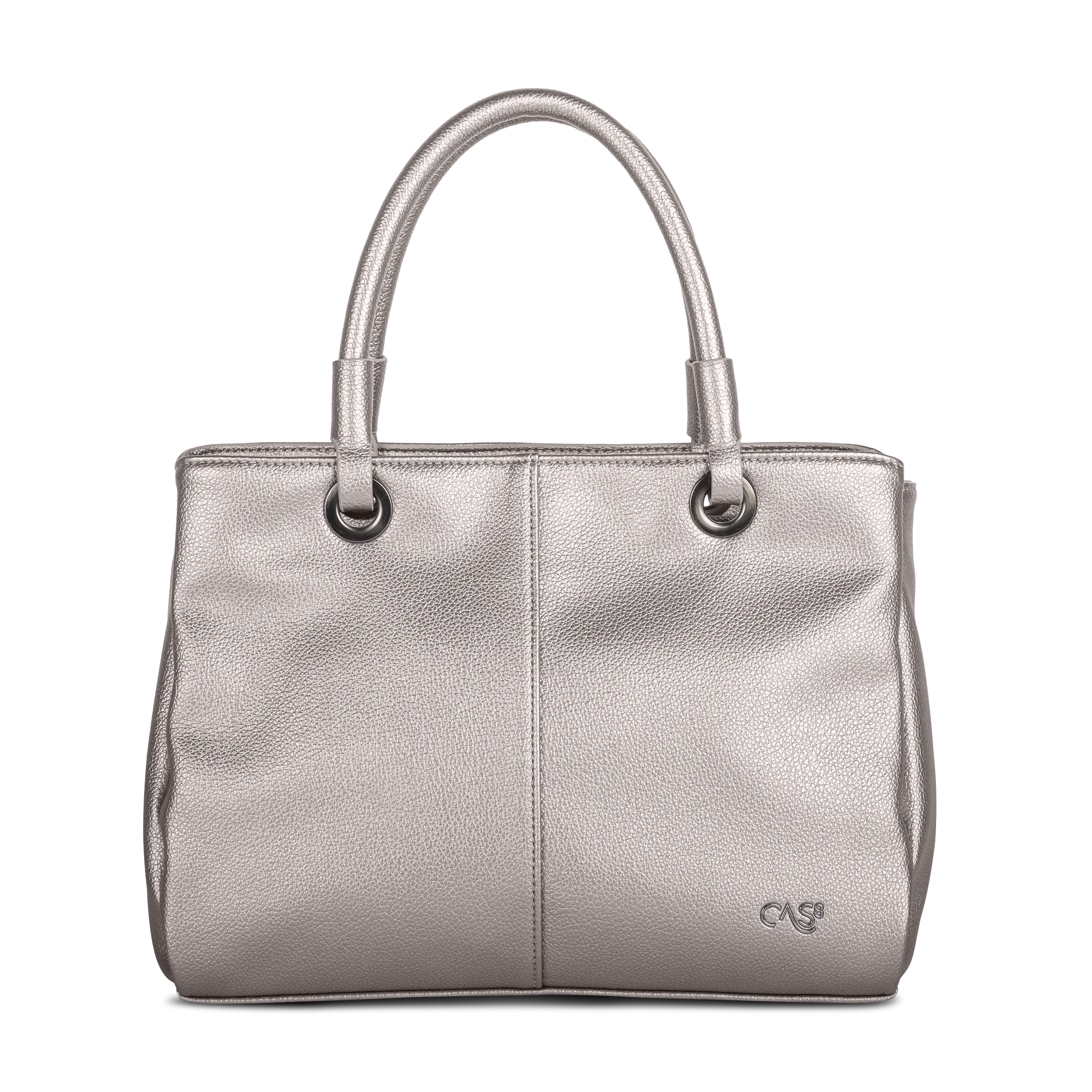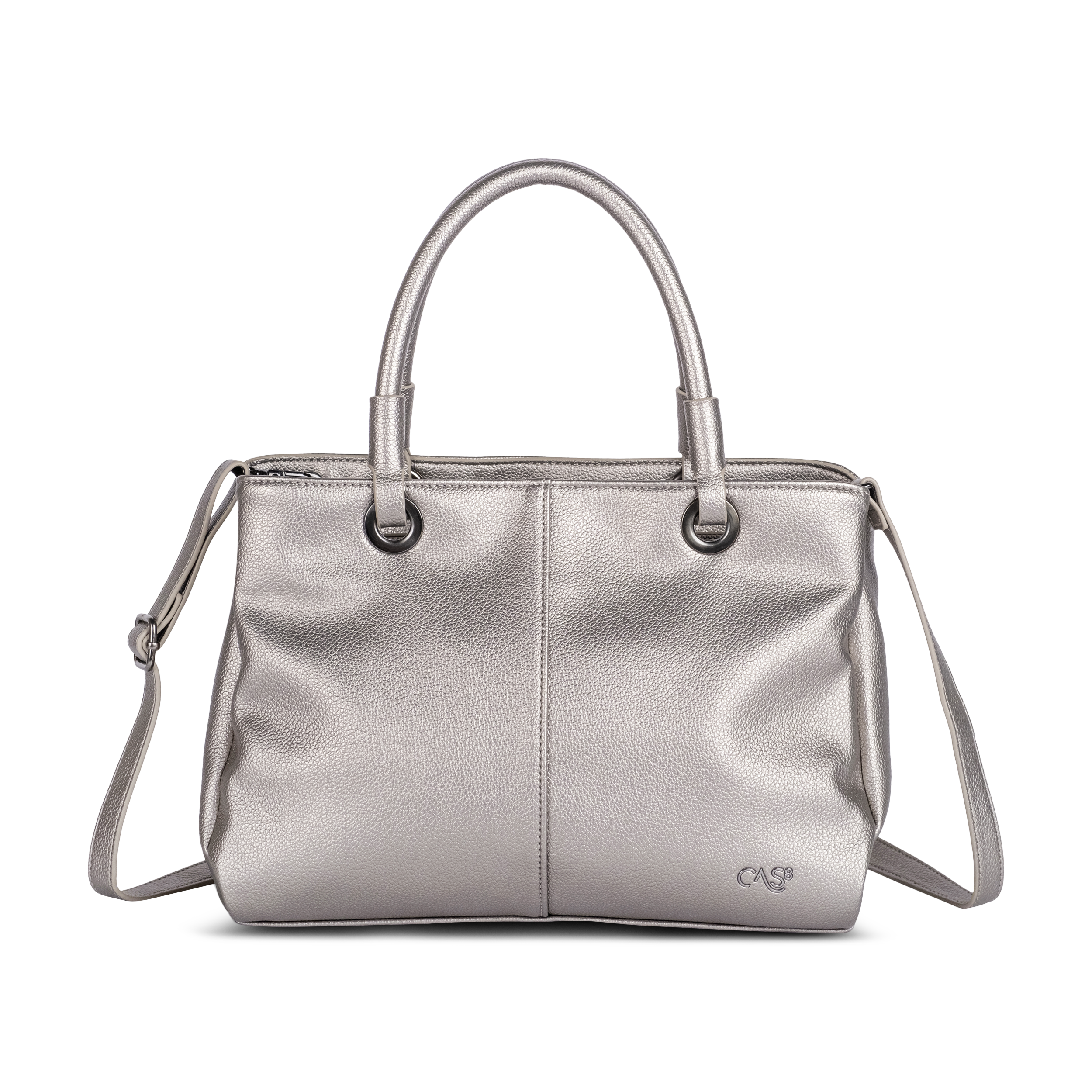 Die elegante Cas8 Handtasche ELLA 34507 (30 x 22 x 14 cm) überzeugt mit glänzender Metallic-Optik, durchdachter Innenaufteilung inklusive Trennwand und Reißverschlussfächern sowie flexiblen Trageoptionen dank abnehmbarem Schultergurt und Henkeln.