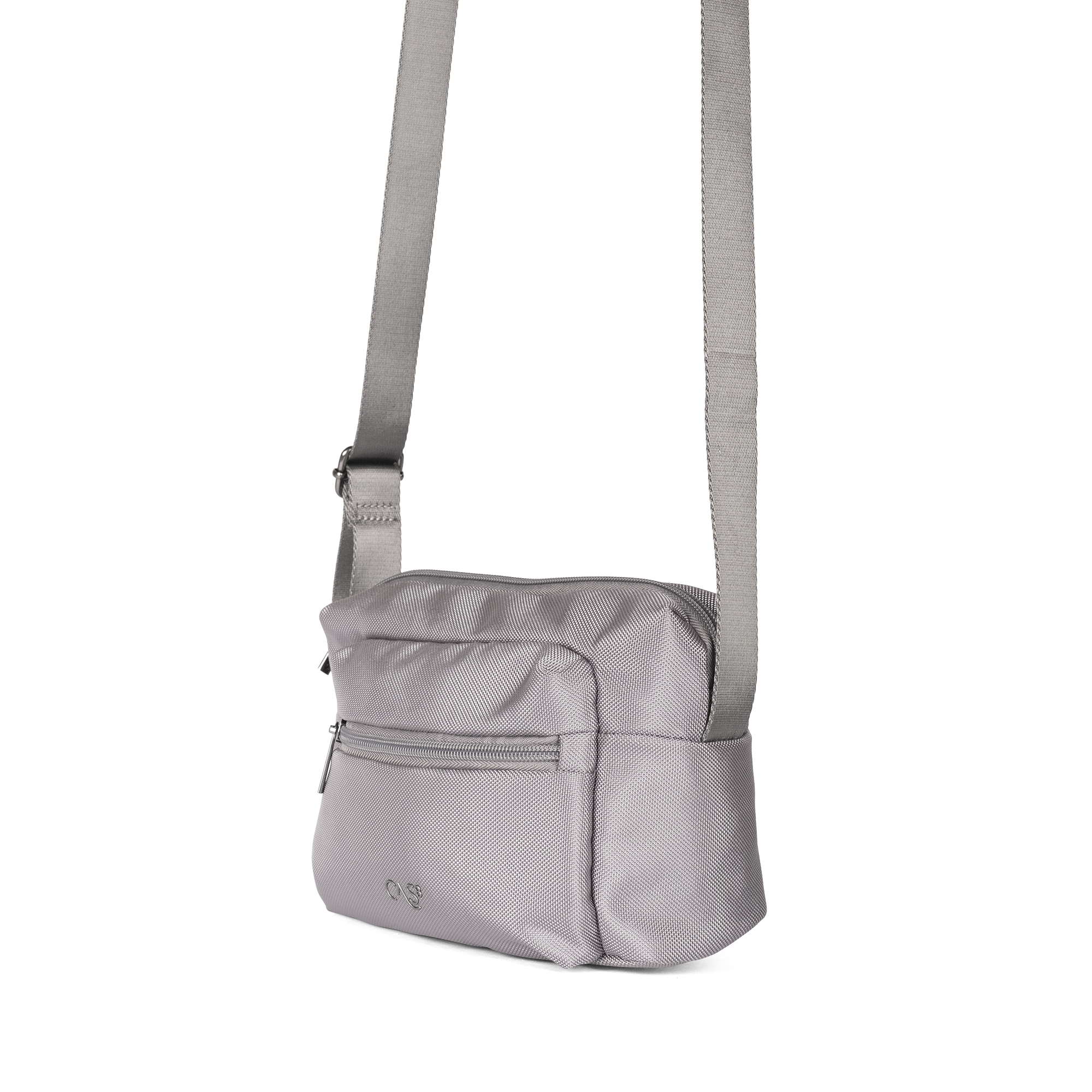 Kleine Umhängetasche (24 x 16 x 8 cm) mit verstellbarem Stoffgurt, sicherem Hauptfach und praktischen Reißverschlusstaschen vorne und hinten – perfekt für Alltag und Freizeit.