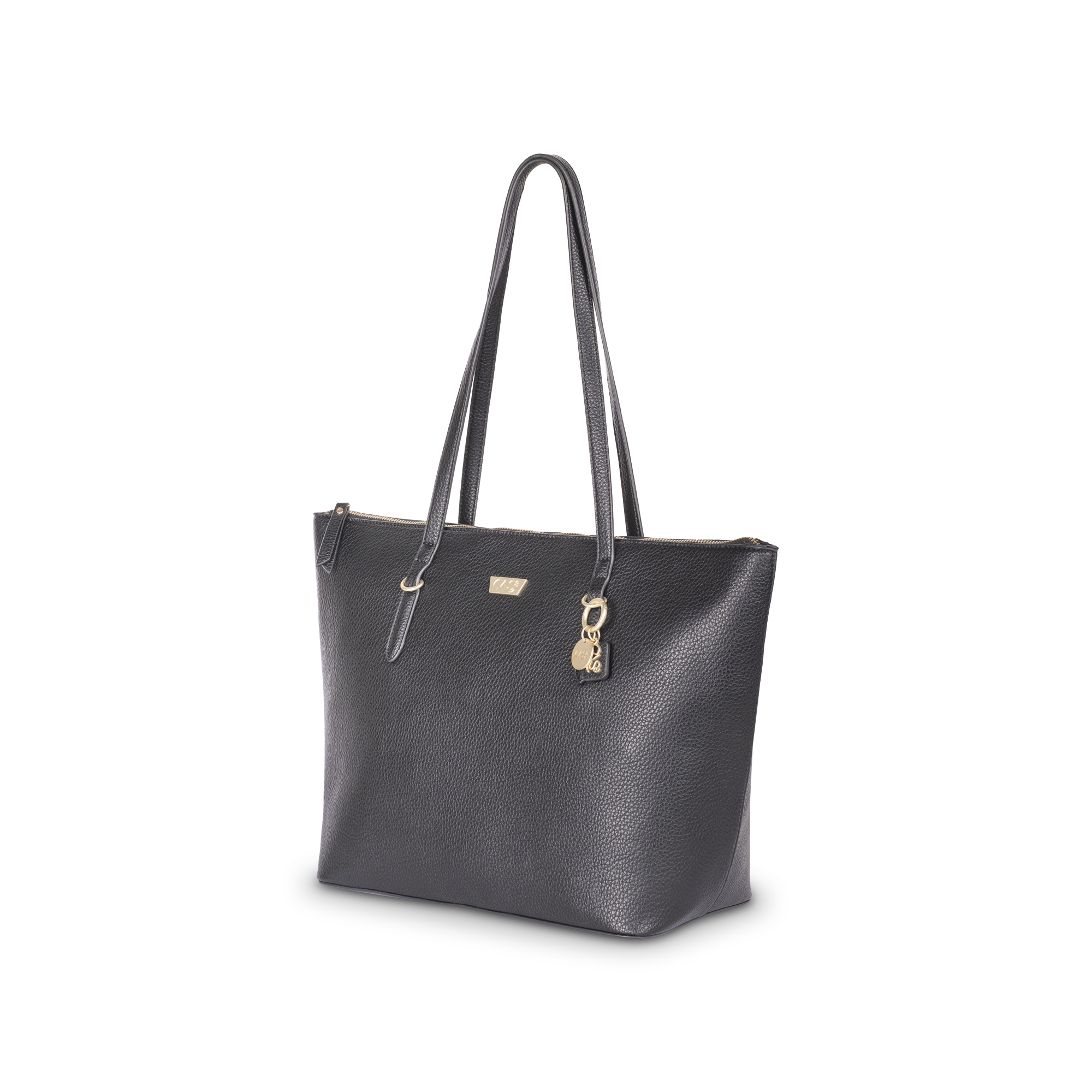 Eleganter Shopper aus der Julia-Serie von cas8 mit goldfarbenen Details, viel Stauraum und klassischem Design – ideal für Alltag, Job und Freizeit.