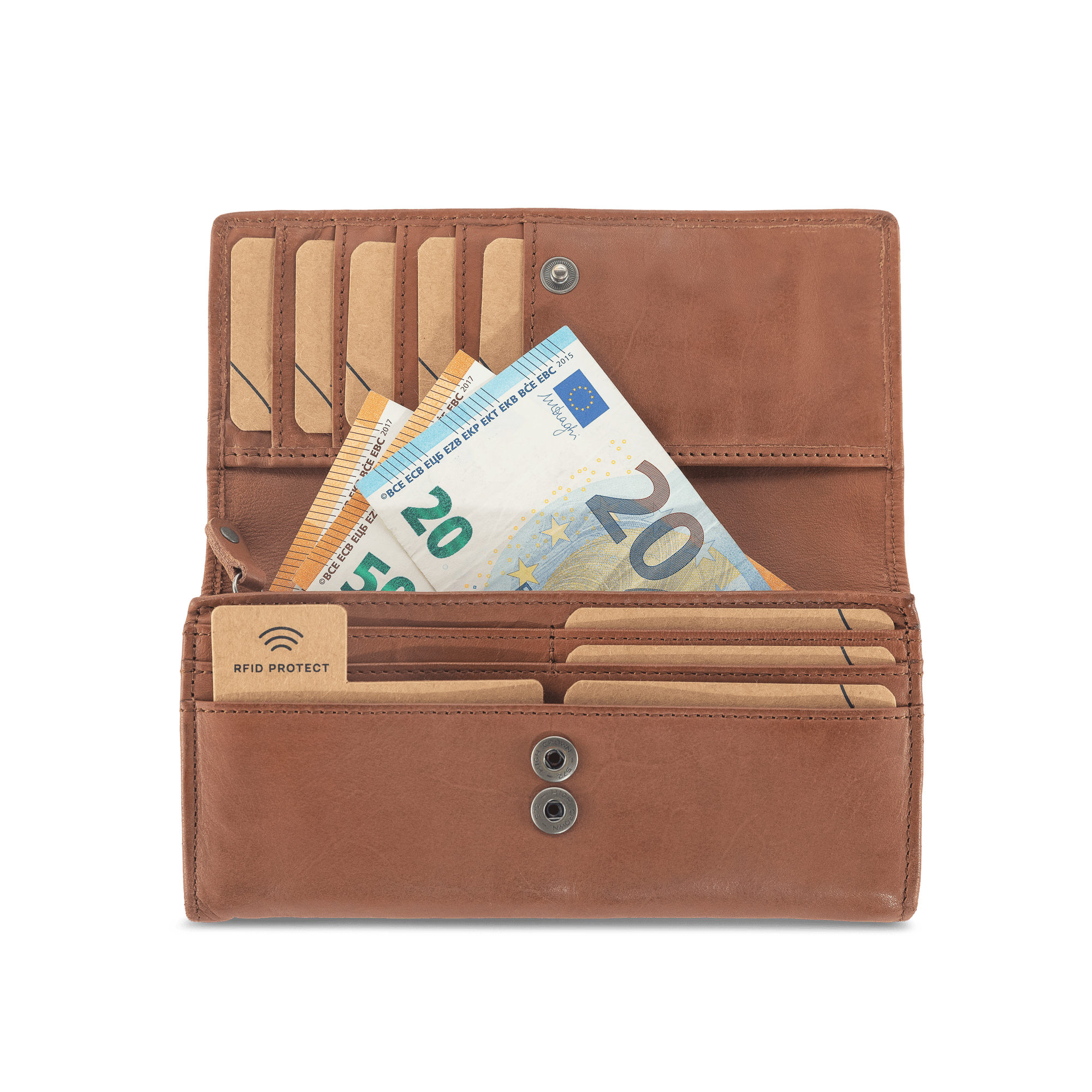 Damenbörse MELODY mit Druckknopfverschluss ► Naturbelassenes Leder ✓ 17 Kartenfächer ✓ 30 Tage Rückgaberecht ✓ Jetzt bestellen!