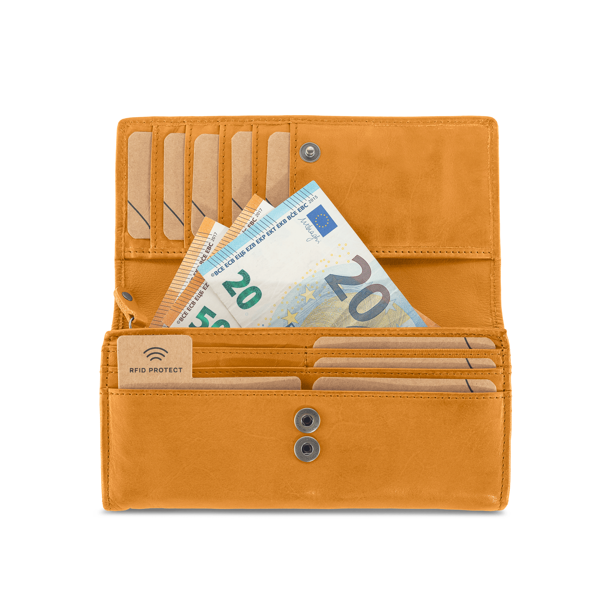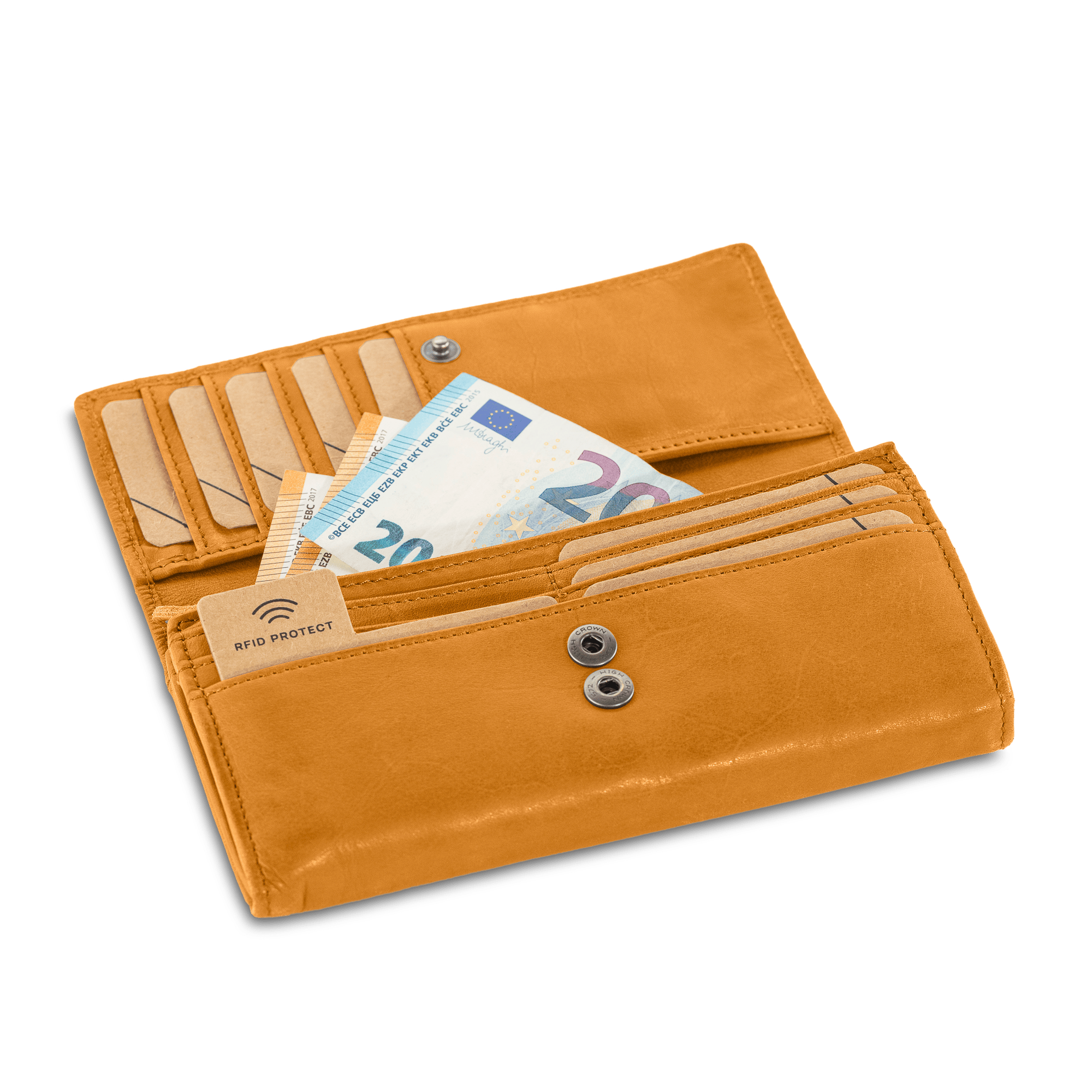 Damenbörse MELODY mit Druckknopfverschluss ► Naturbelassenes Leder ✓ 17 Kartenfächer ✓ 30 Tage Rückgaberecht ✓ Jetzt bestellen!