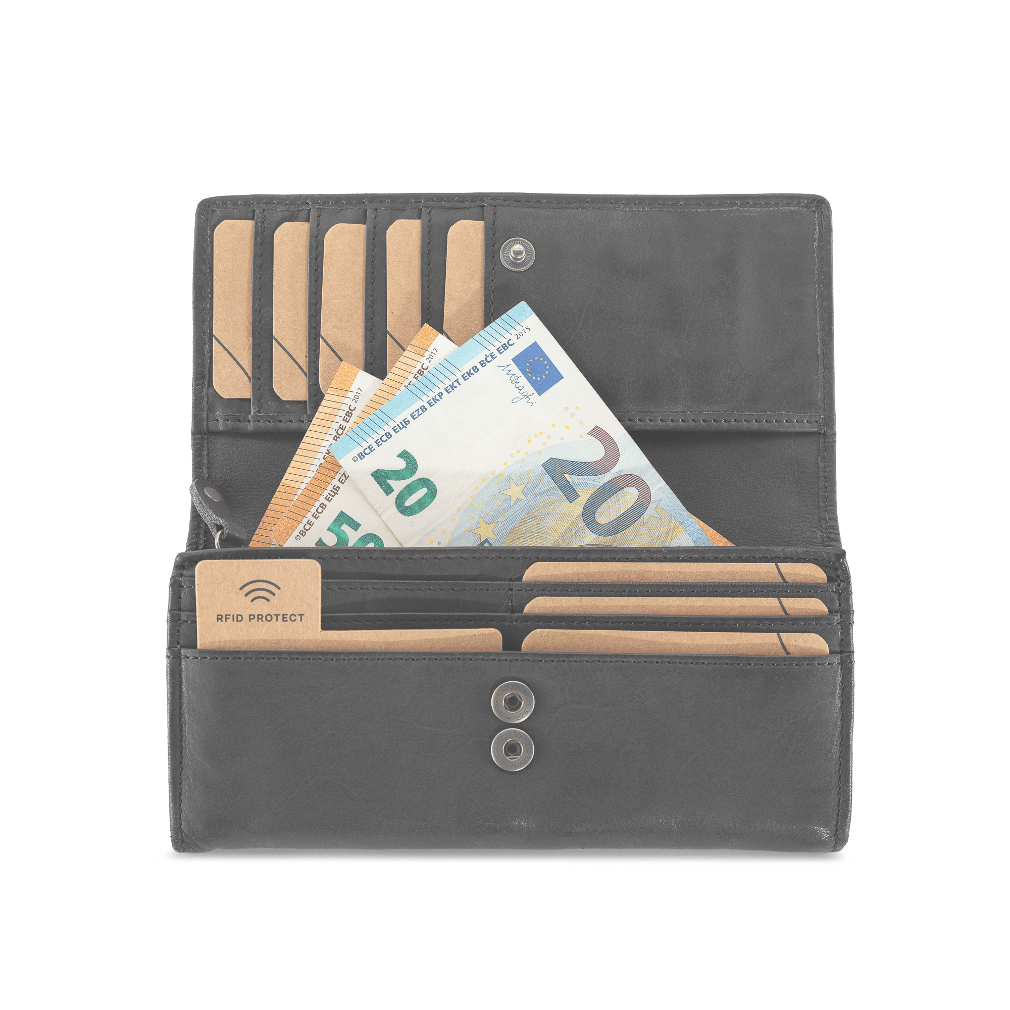 Damenbörse MELODY mit Druckknopfverschluss ► Naturbelassenes Leder ✓ 17 Kartenfächer ✓ 30 Tage Rückgaberecht ✓ Jetzt bestellen!
