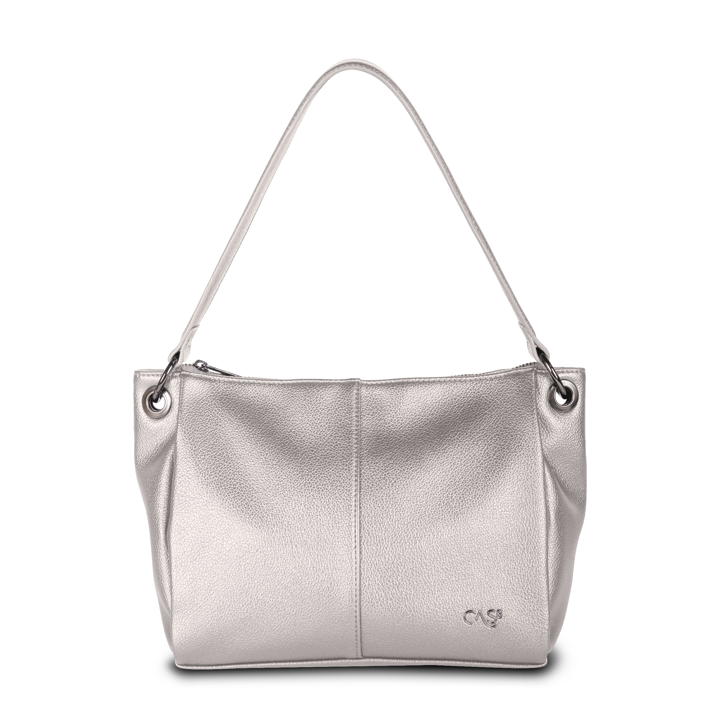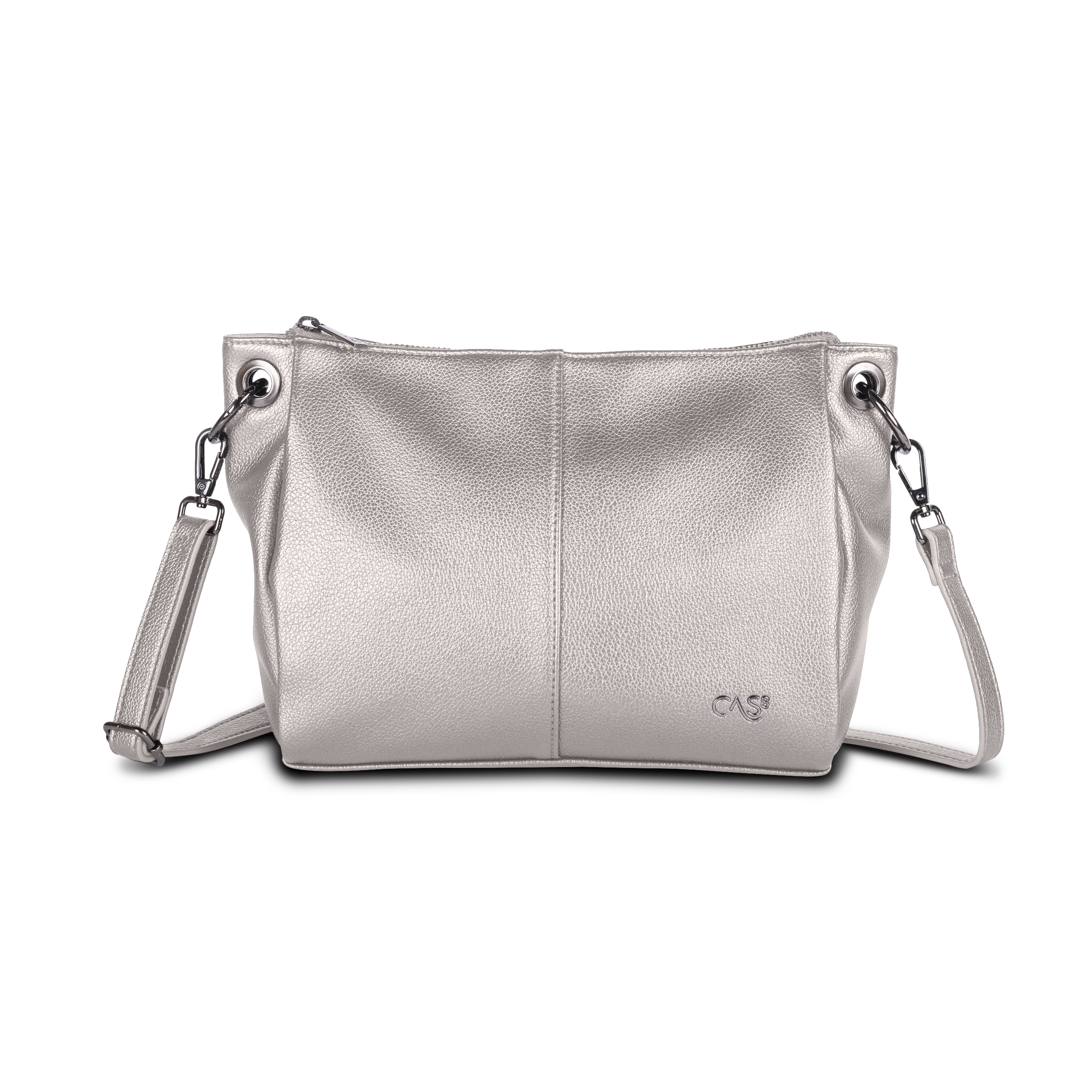 Cas8 Handtasche ELLA 34506 - Mit dieser mittelgroßen Umhängetasche (31 x 21 x 12 cm) in edler Metallic-Optik sind Sie stets perfekt ausgerüstet – ob beim täglichen Stadtbummel oder an einem stilvollen Abend. Das durchdachte Design der eleganten Tasche bietet ein praktisches Innenfach mit Reißverschluss sowie zwei Steckfächer für eine übersichtliche Aufbewahrung, zum Beispiel von Smartphone oder Schlüssel. Ein weiteres Reißverschlussfach auf der Rückseite der Damentasche sorgt für zusätzlichen Stauraum. Der abnehmbare und längenverstellbare Umhängegurt der Tasche sowie der kürzere Schultergurt bieten flexible Tragemöglichkeiten. So kann sie sportlich als Crossbody oder elegant über der Schulter getragen werden.