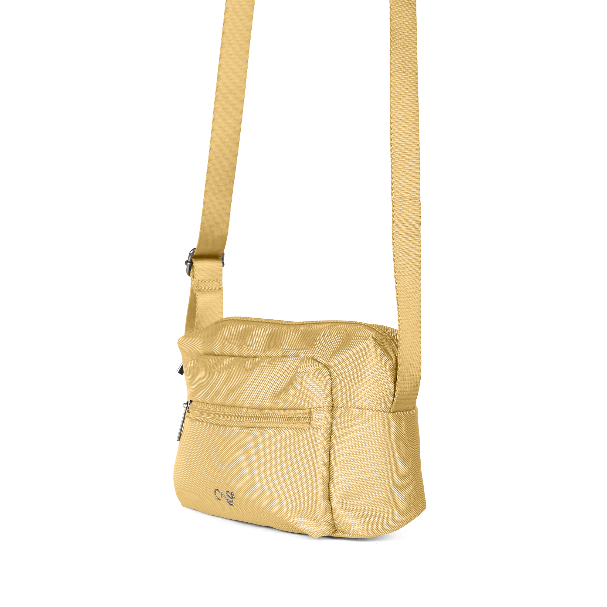 Kleine Umhängetasche (24 x 16 x 8 cm) mit verstellbarem Stoffgurt, sicherem Hauptfach und praktischen Reißverschlusstaschen vorne und hinten – perfekt für Alltag und Freizeit.