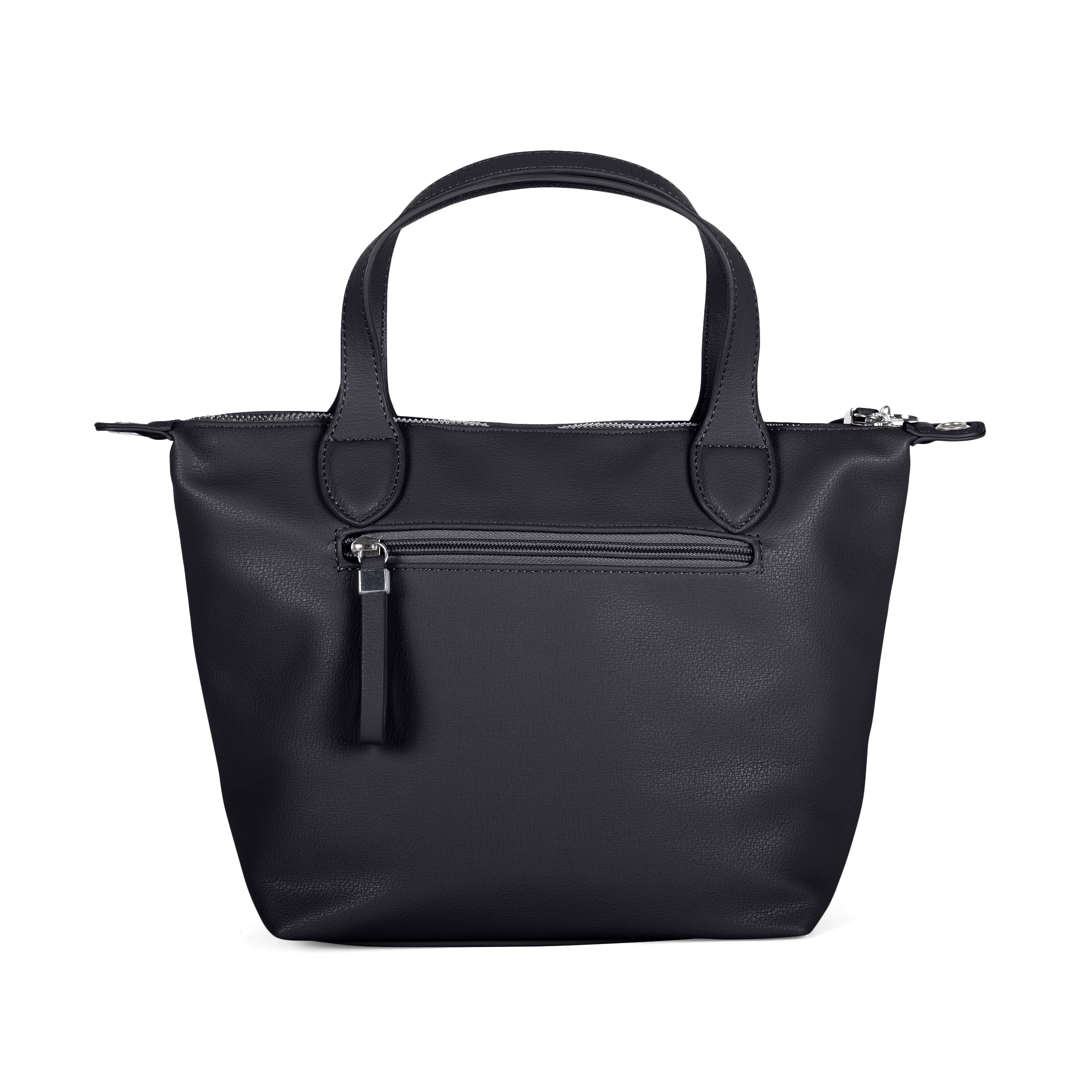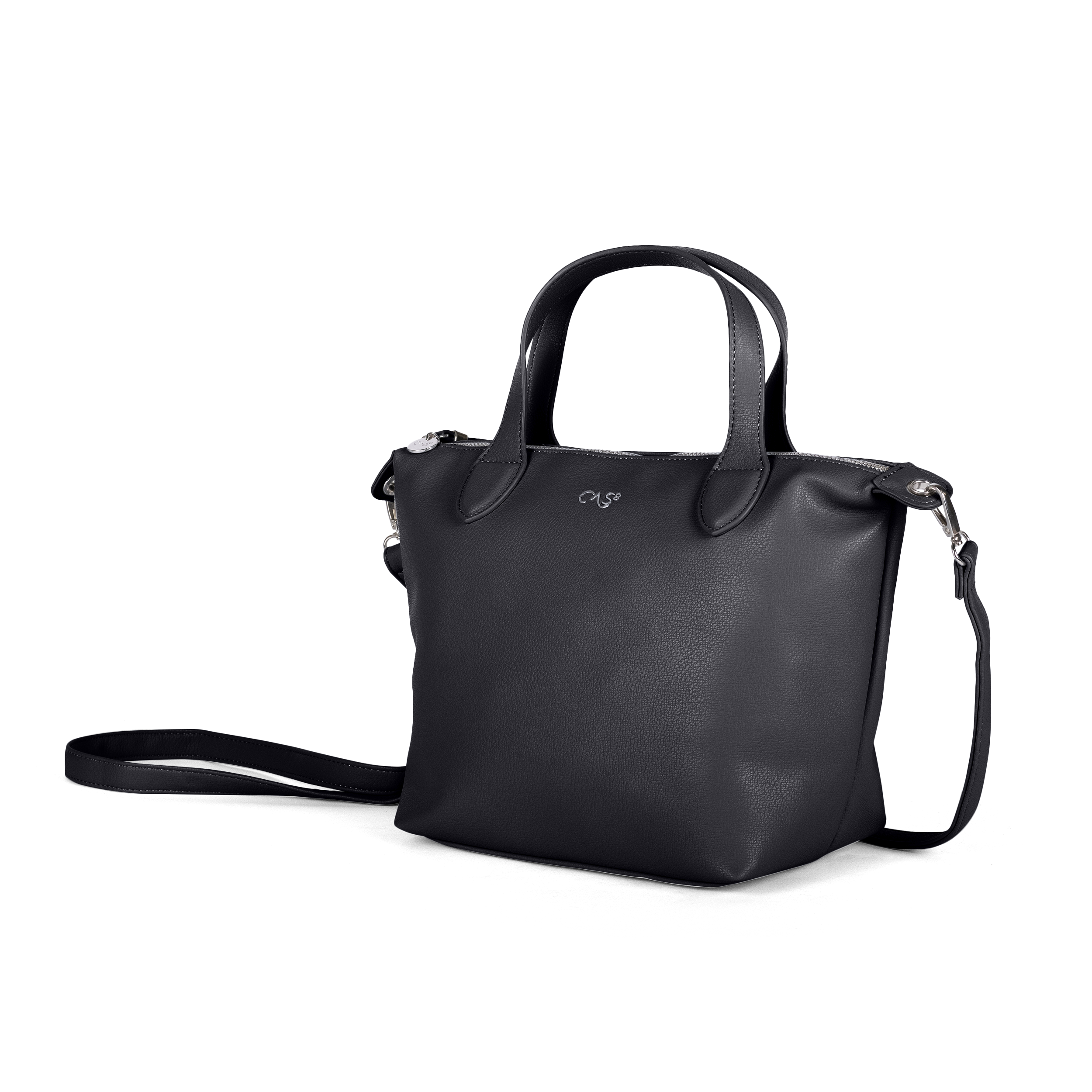Praktische und elegante mittelgroße Handtasche aus hochwertigem PU. Mit zwei Tragehenkeln, abnehmbarem Umhängegurt, Reißverschlussfach innen und außen sowie dezenter Metall-Logoverzierung – ideal für Alltag, Büro und Freizeit.