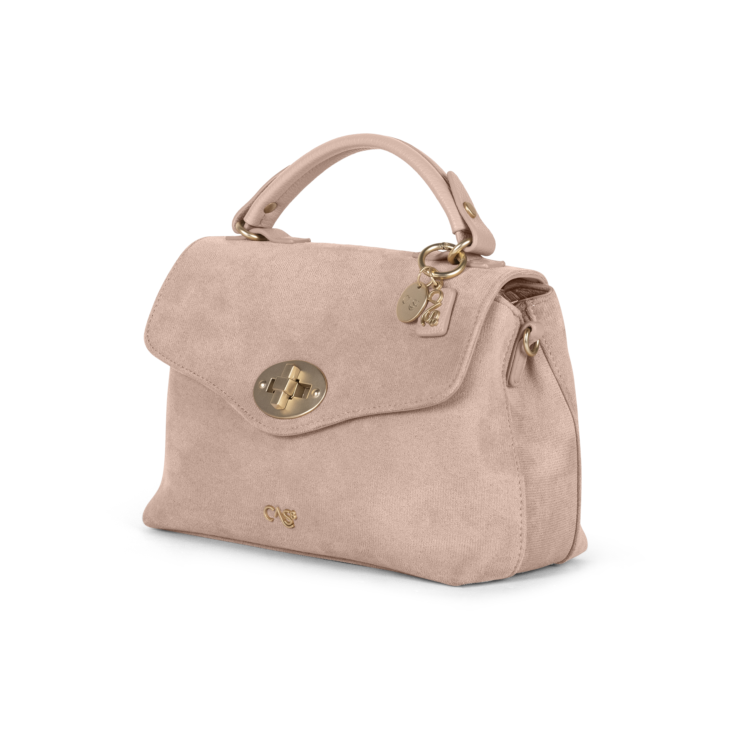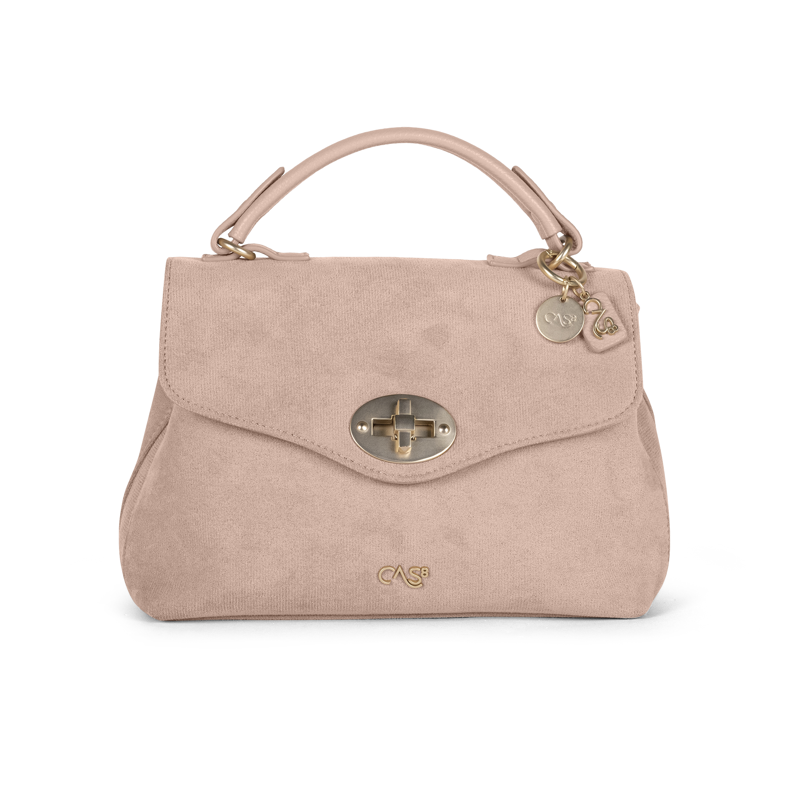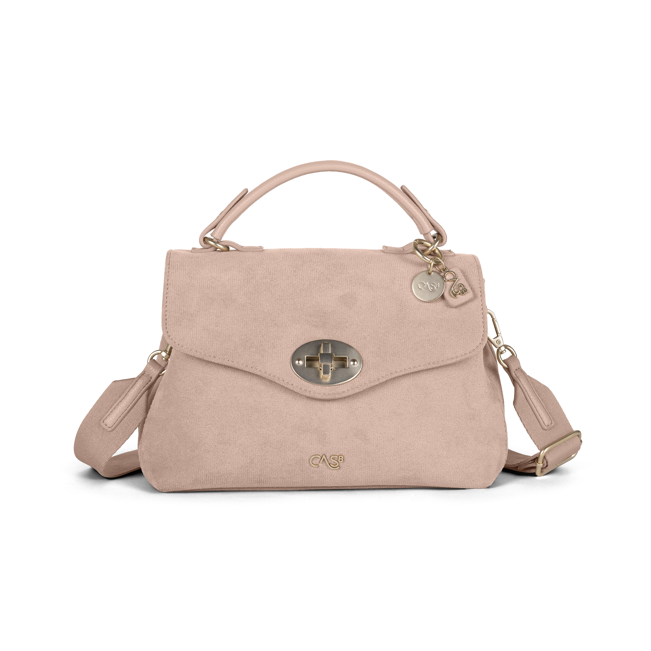 Cas8 Handtasche RIKE 35200 A aus veganem Suede mit Drehverschluss, zwei Innenfächern und abnehmbarem Stoffgurt – kompakt, stilvoll und vielseitig tragbar.
