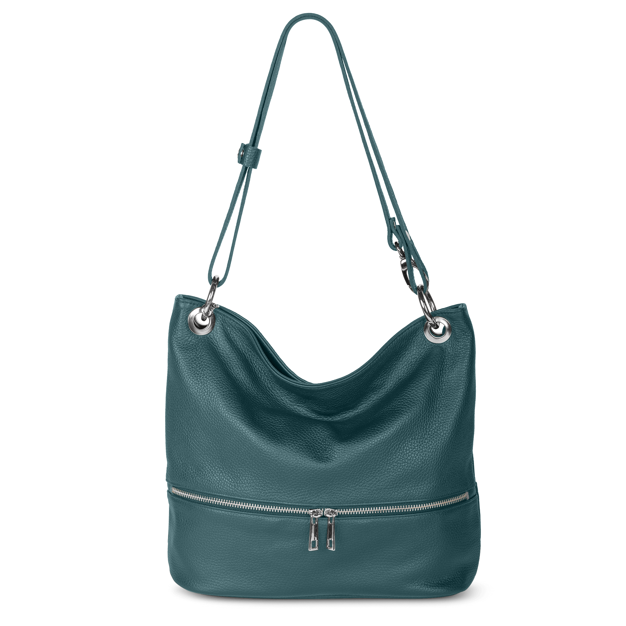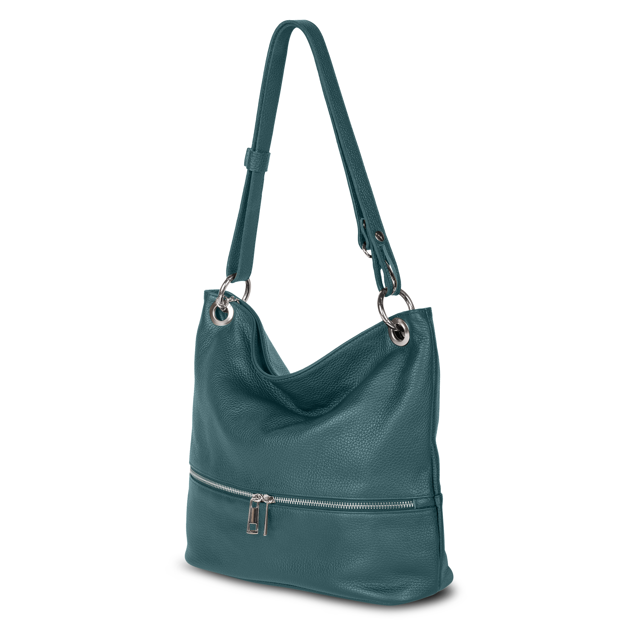 Cas8 Shopper Ornella - Der stilvolle Shopper punktet mit seinem geräumigen Hauptfach, das sicher mit einem Reißverschluss verschlossen wird. Der Innenraum der großen Umhängetasche ist praktisch unterteilt: Eine Trennwand mit Reißverschlussfach, zwei Steckfächer sowie ein weiteres Reißverschlussfach sorgen hier für Ordnung. Zusätzlichen Stauraum bieten Reißverschlussfächer auf der Vorder- und Rückseite der Tasche. Der abnehmbare Schultergurt, der an runden Karabinern befestigt ist, bietet variable Tragemöglichkeiten. Ein besonderes Highlight ist der dekorative Anhänger aus Lederstreifen und einer Kette, der dem Design eine elegante Note verleiht.