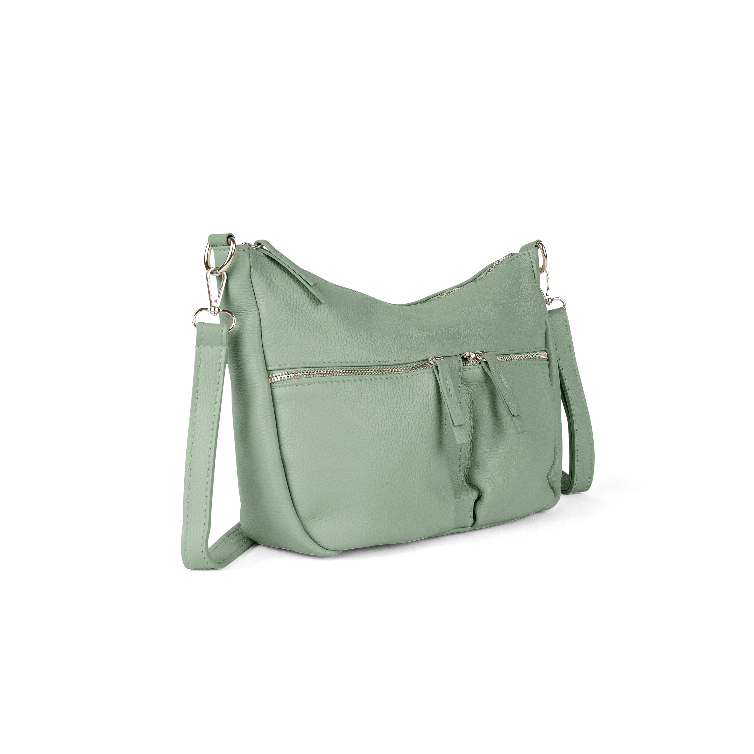 Die Handtasche CLARISSA ist aus hochwertigem Leder und mit viel Liebe in Italien gefertigt. Sie strahlt eine elegante Leichtigkeit aus, die Freude in den Alltag bringt. Dazu ist die Umhängetasche super praktisch und funktional mit vielen Fächern ausgestattet, die alle Essentials schnell griffbereit und gut organisiert halten. So besitzt die Tasche auf der Vorderseite zwei kleine Vortaschen mit Reißverschluss und ein Reißverschlussfach auf der Rückseite für Kleinigkeiten. Innen ist die Umhängetasche mit einem angenehmen Innenfutter aus Stoff ausgestattet und überzeugt mit einer Reißverschlusstrennwand für mehr Struktur sowie einem Reißverschlussfach und einem Einsteckfach. Dank des längenverstellbaren und abnehmbaren Schulterriemens lässt sich Tasche flexibel tragen – als Schultertasche oder Crossbody-Bag.