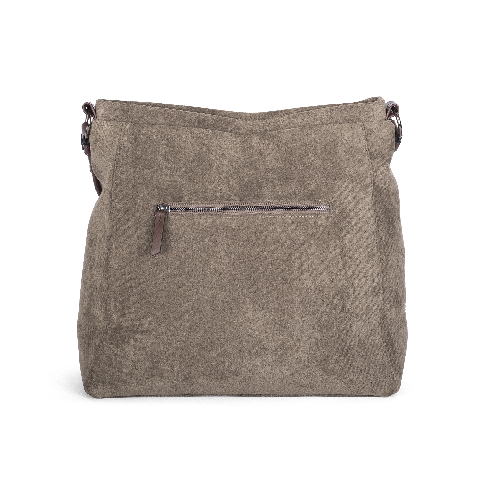 Großer Damen-Shopper aus weichem, veganem Suede mit viel Stauraum, modernen Details und zwei Trageoptionen – ideal für Alltag und Büro.