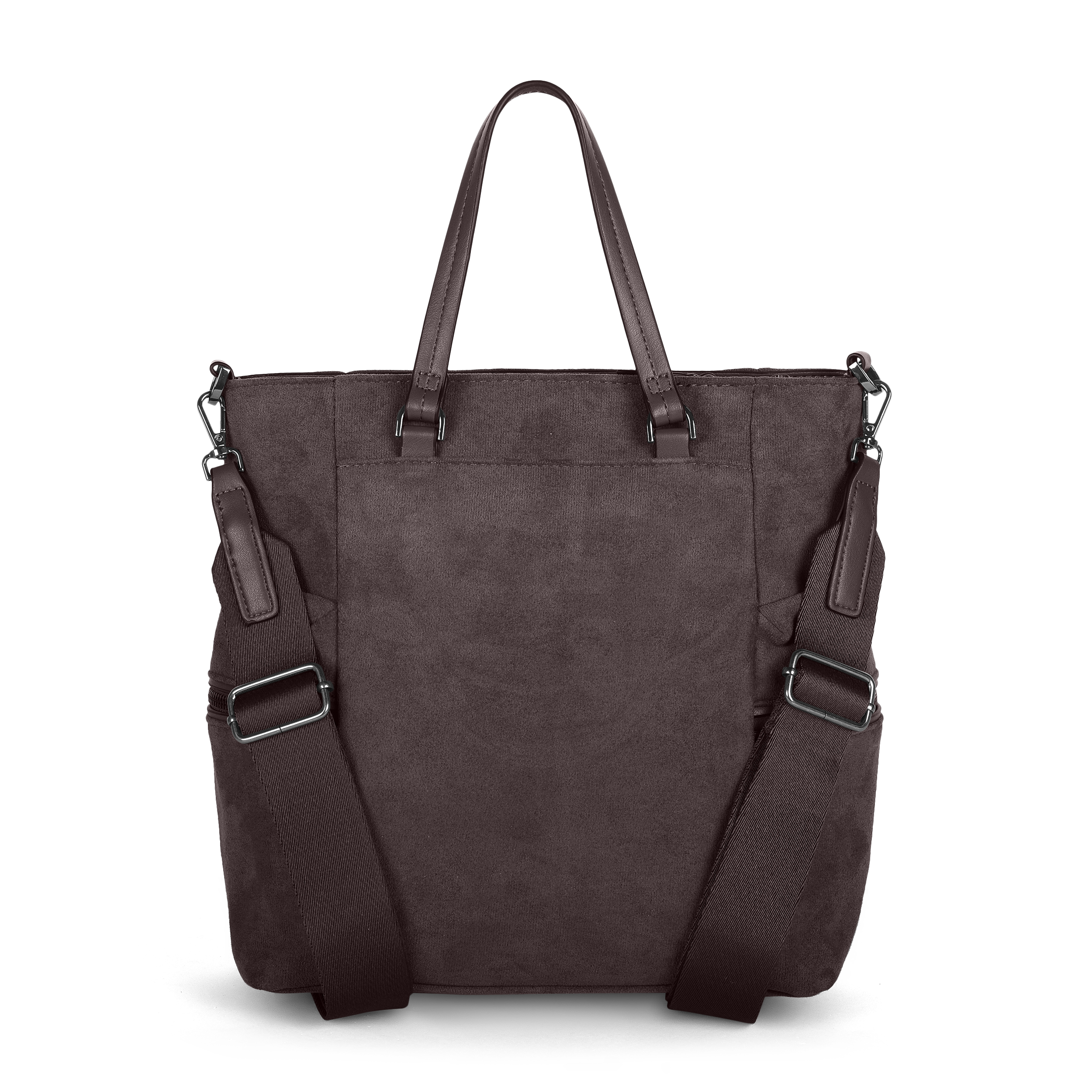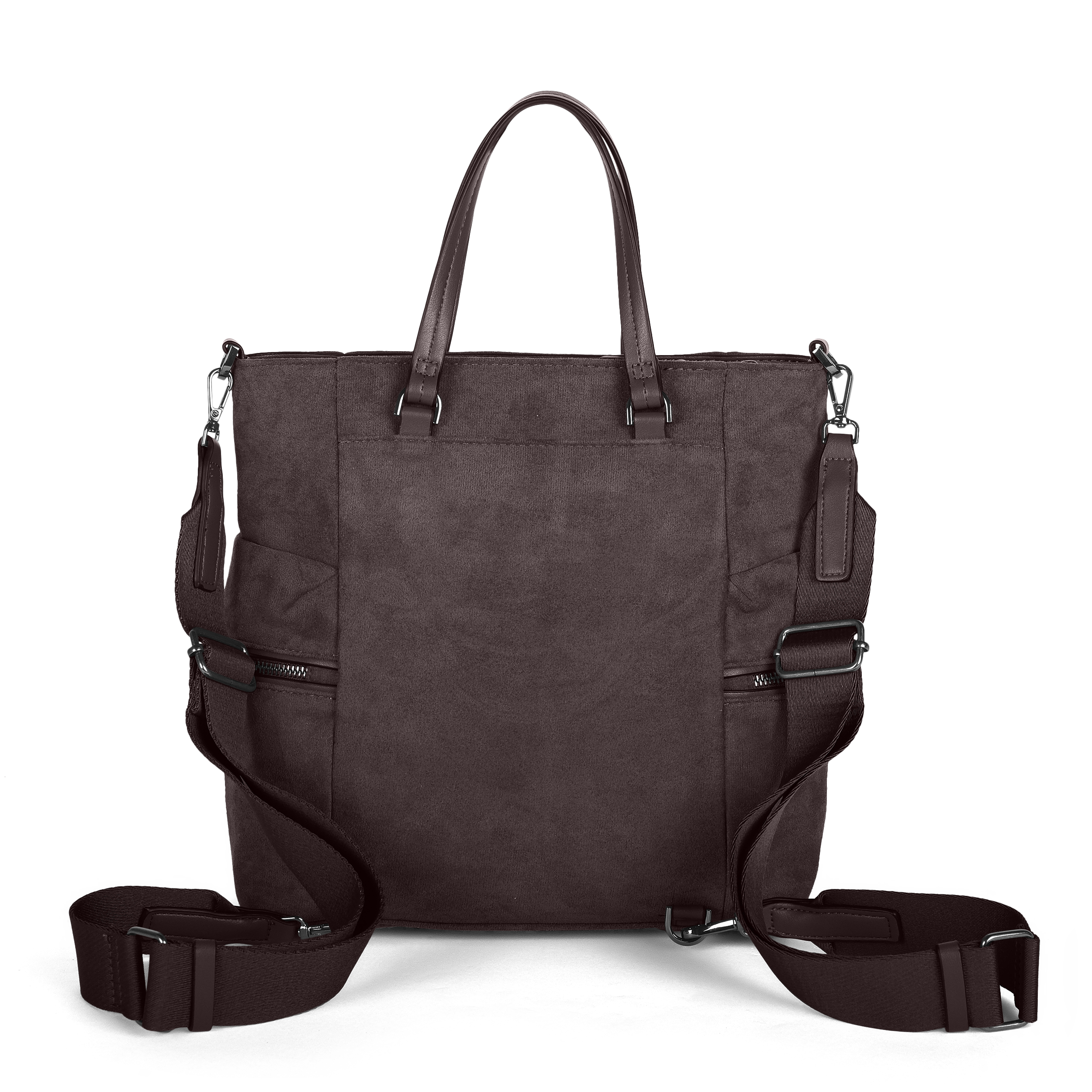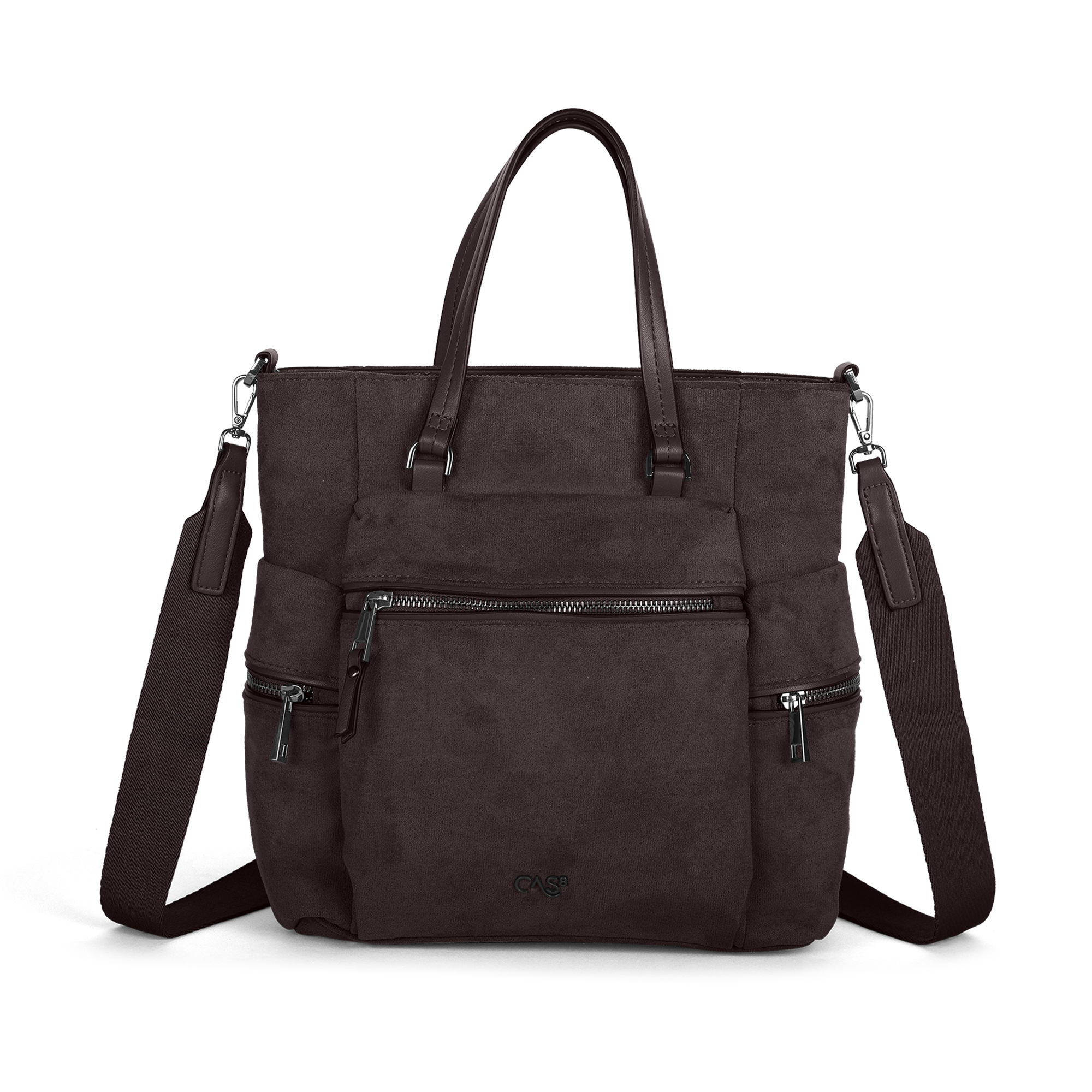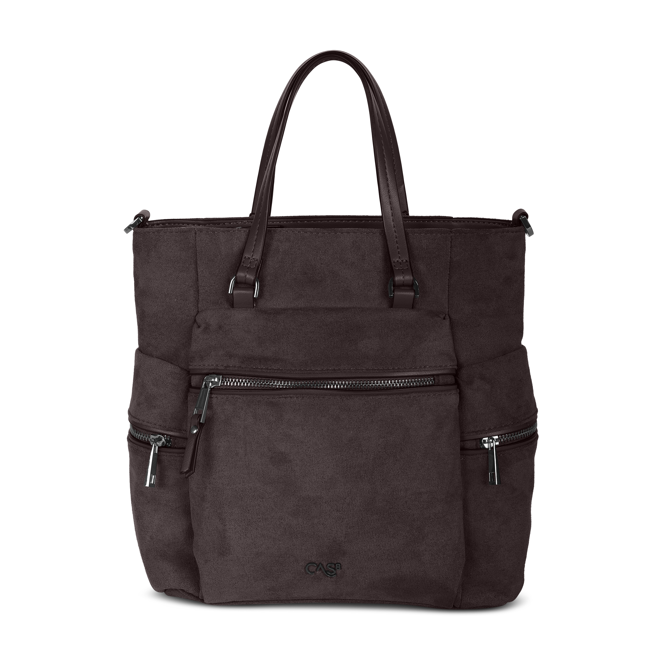 Stylische Cas8 Tasche mit Rucksackfunktion aus weichem, veganem Suede. Vielseitig tragbar mit cleverer Aufteilung – ideal für Alltag und City.