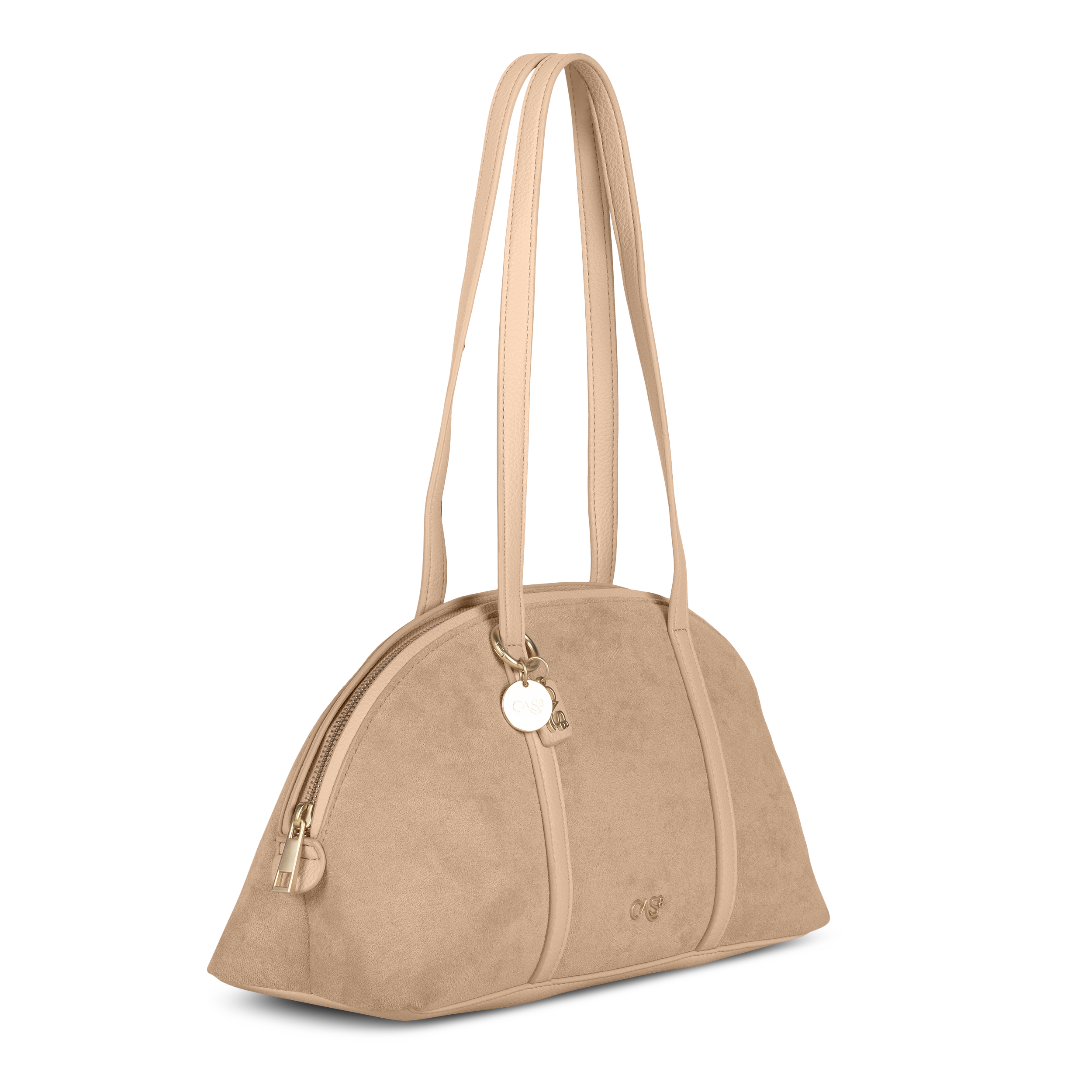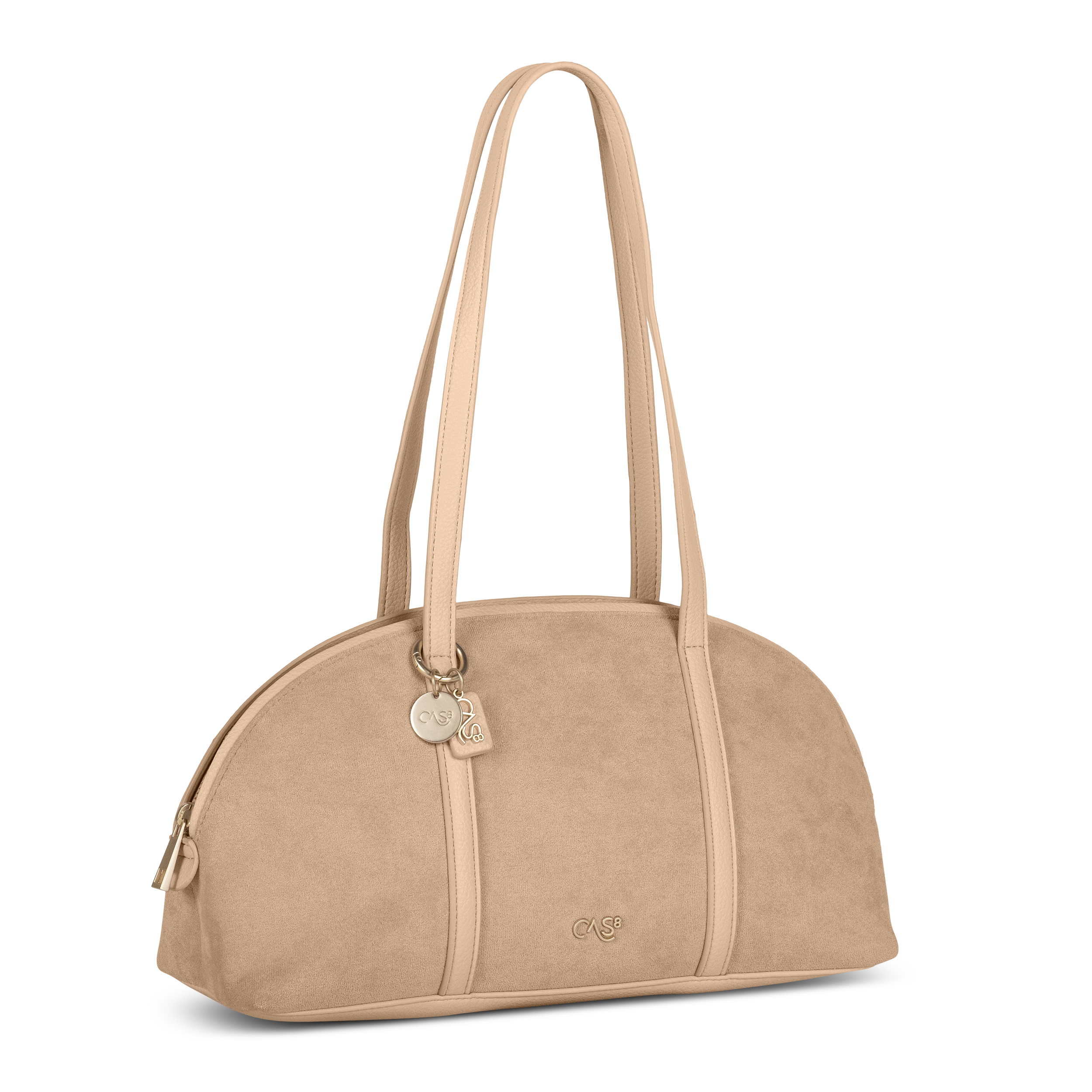 Die Cas8 Handtasche Rike 35590 begeistert mit veganem Wildleder-Look, fest angenähten PU-Henkeln, praktischem Reißverschlussfach innen und ausreichend Platz für Essentials – stylisch als Schulter- oder Handtasche für Alltag und City.