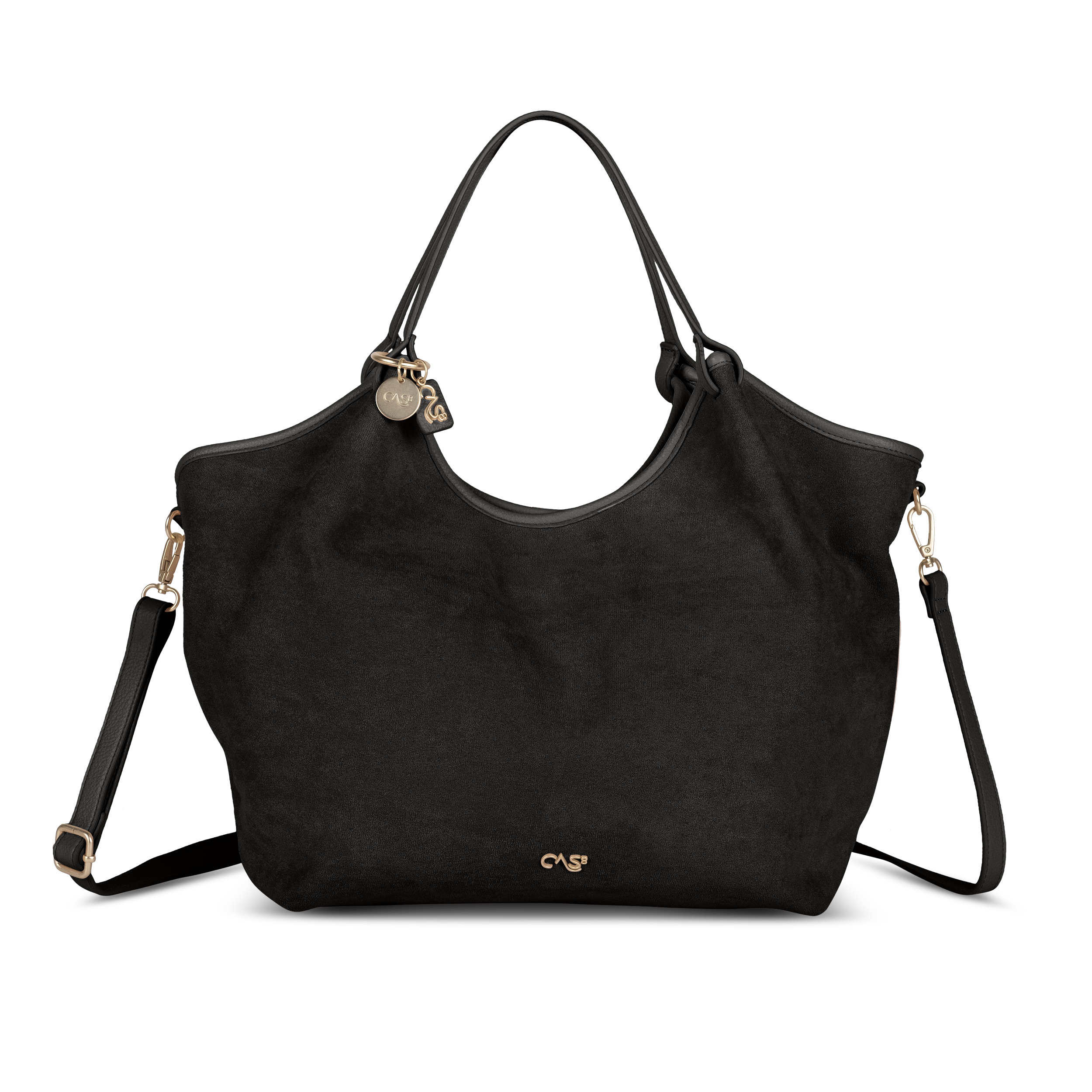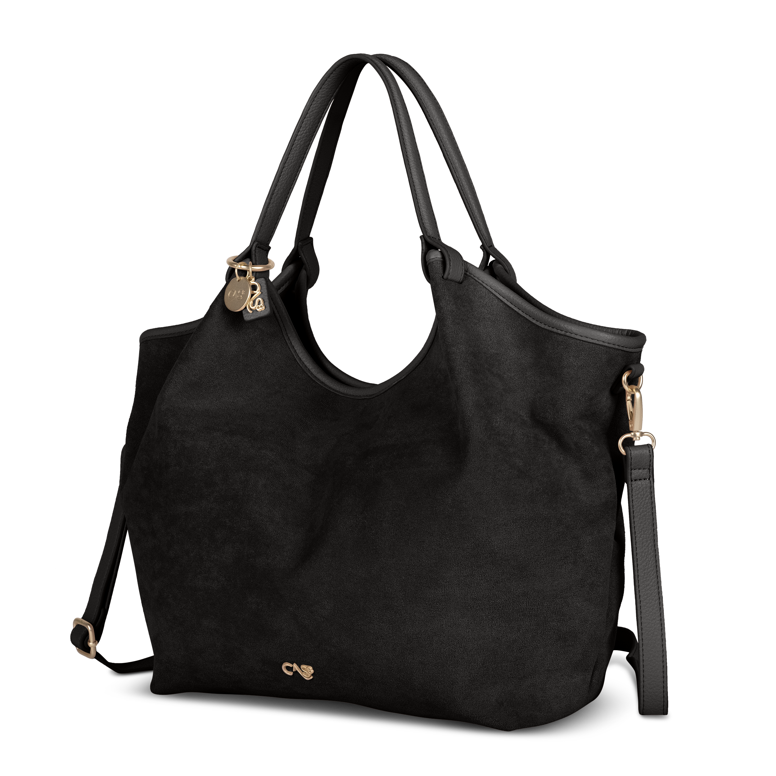 Funktionaler Shopper Rike 35487 von Cas8 aus veganem Suede mit viel Stauraum, Trennfach und Reißverschlussfach – ideal als Damen Tasche für Alltag und Büro.