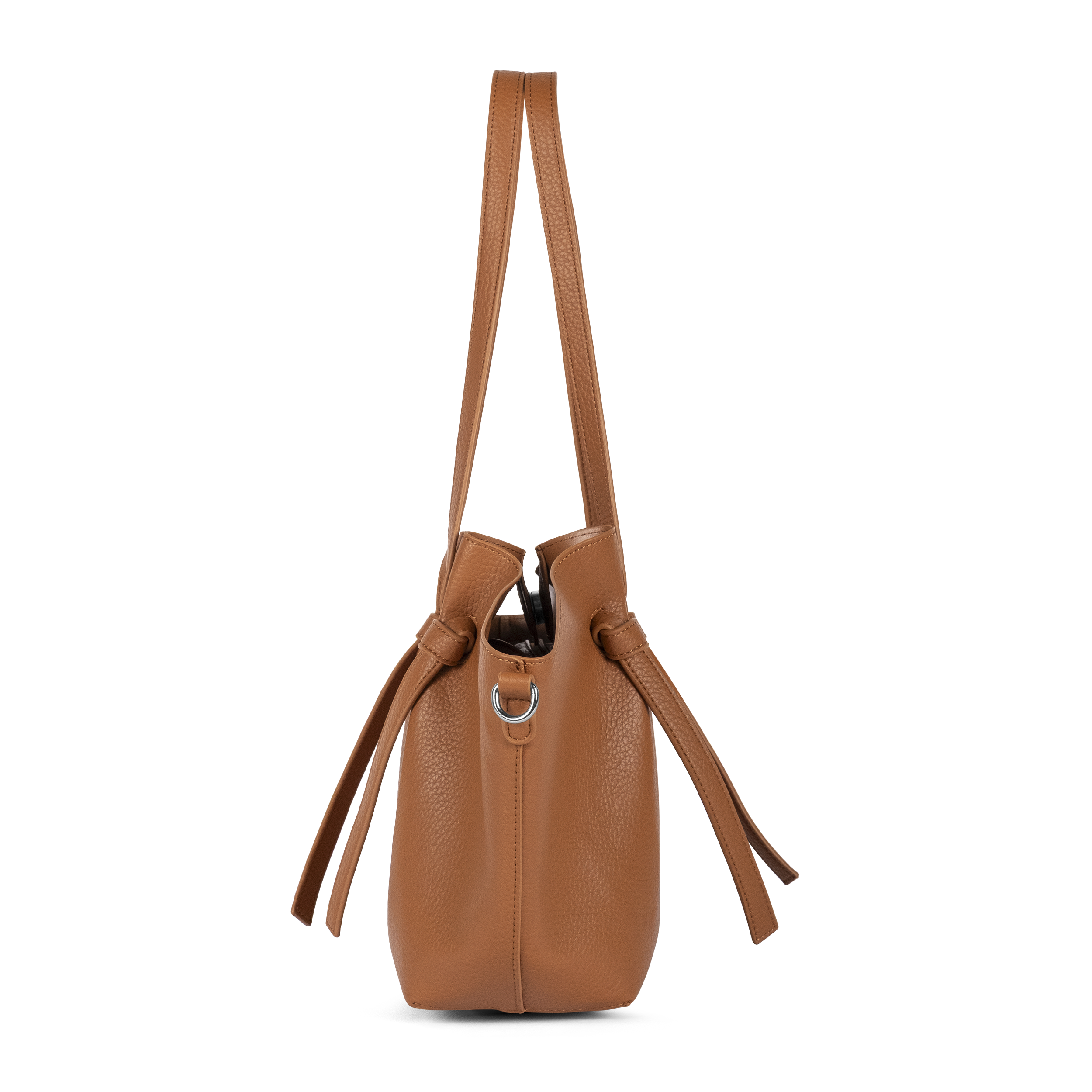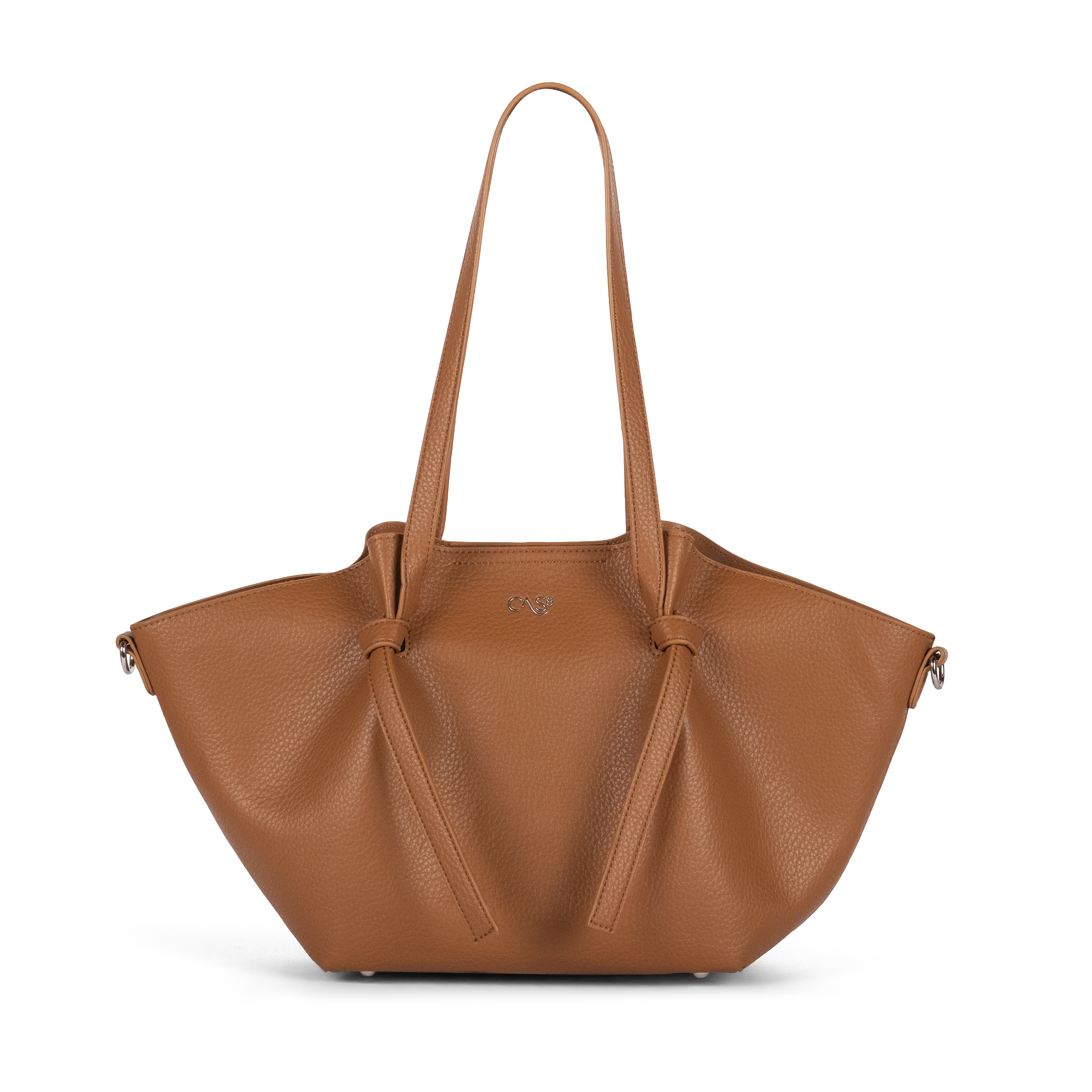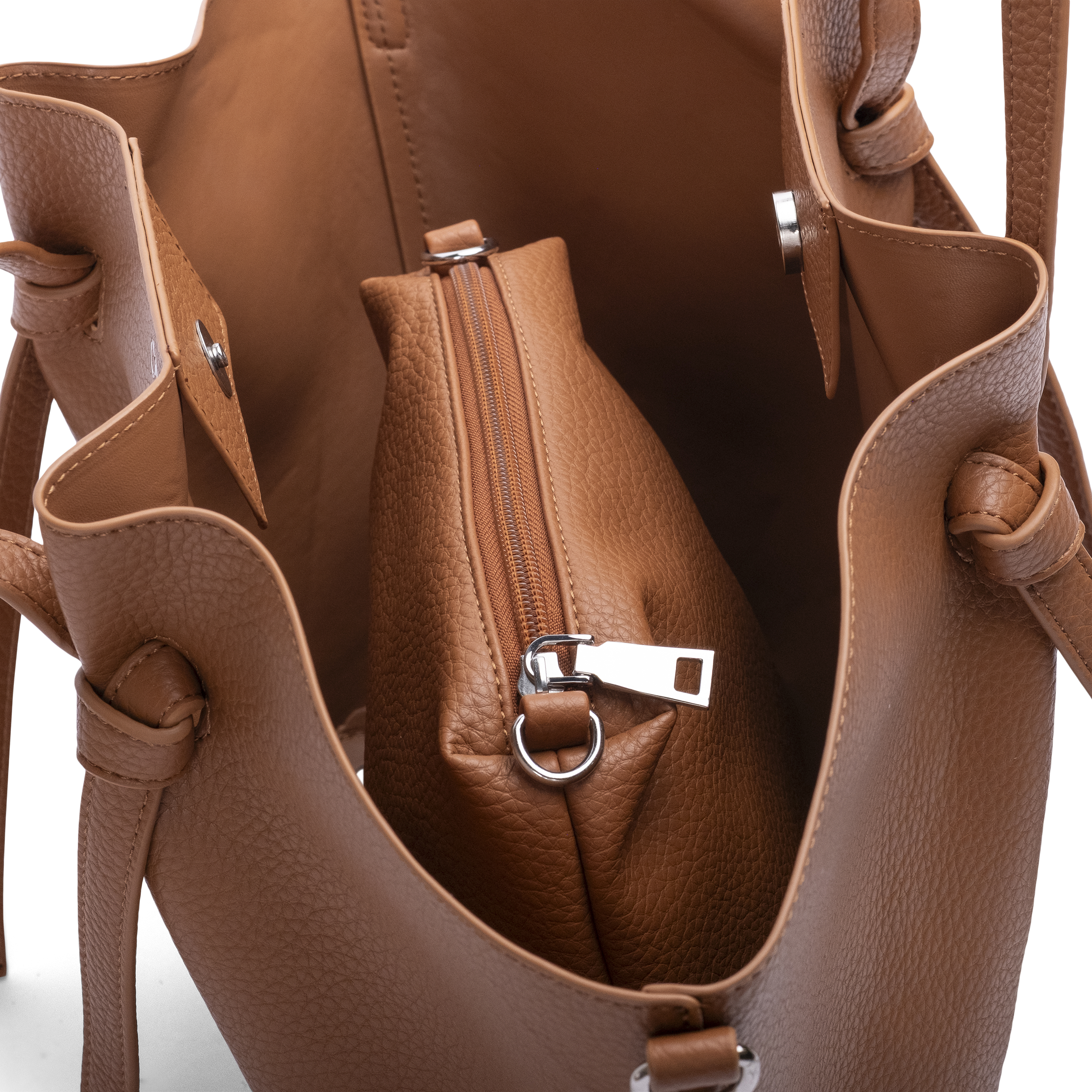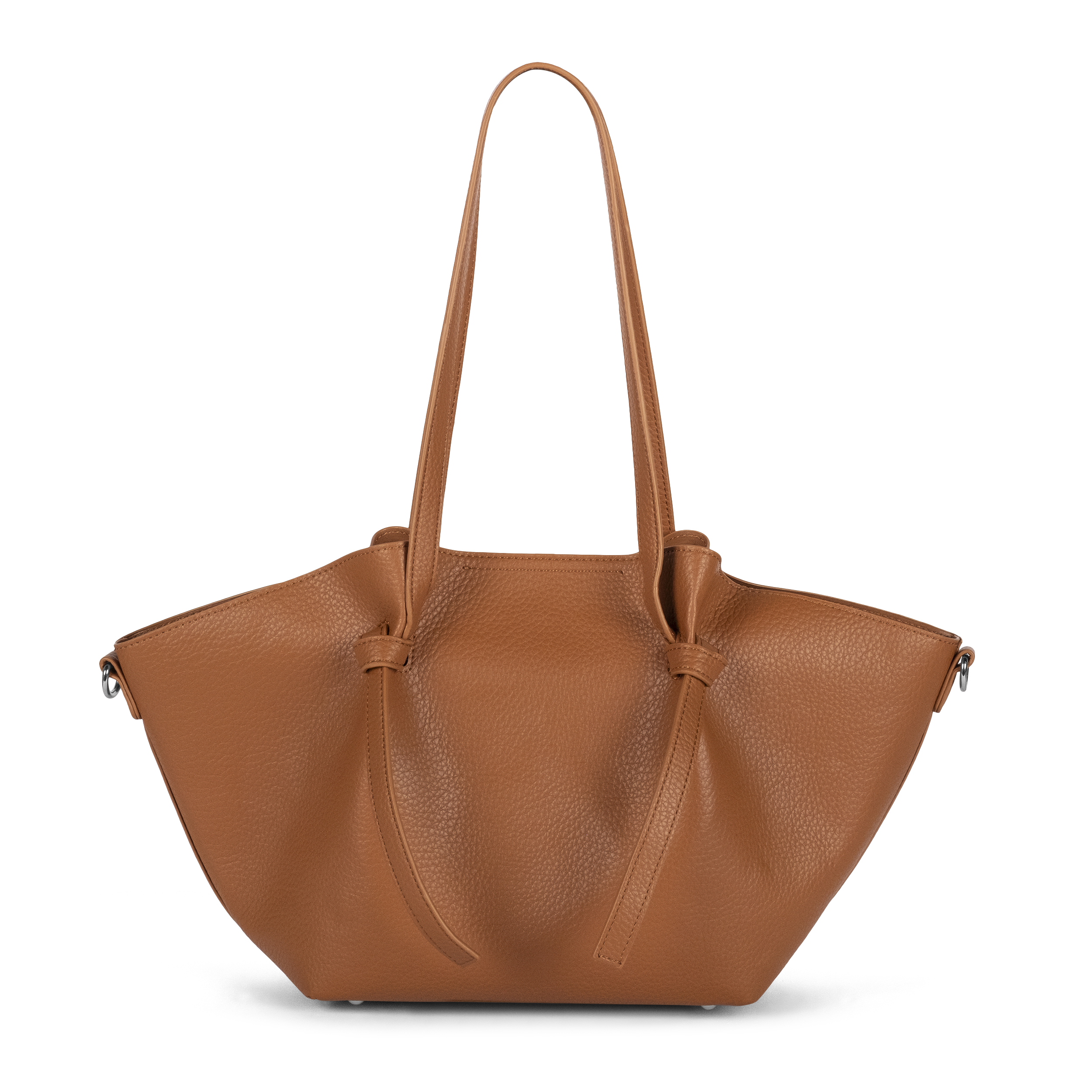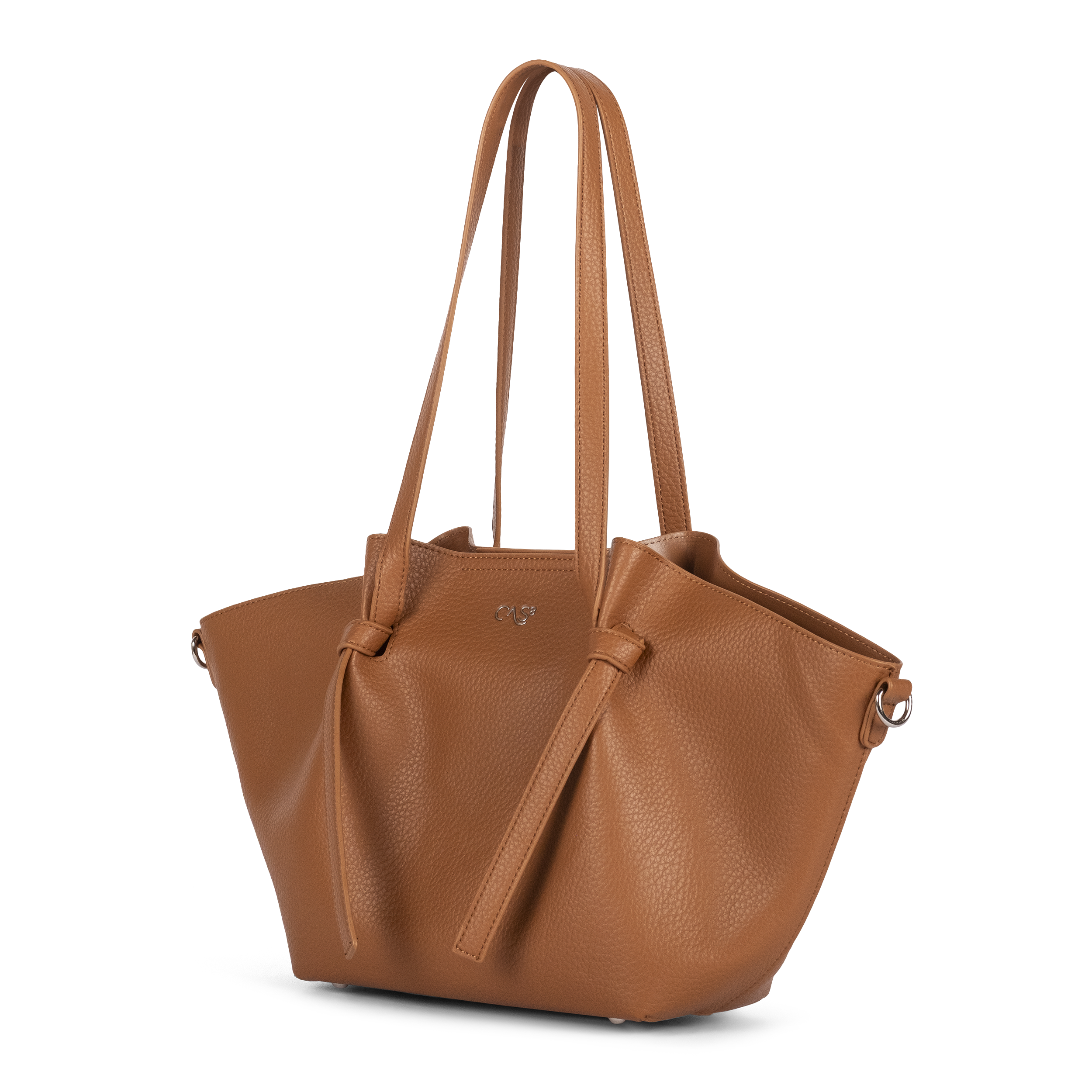 Kleiner, trendiger Shopper mit trapezförmiger Silhouette, dekorativen Knotendetails und herausnehmbarer Innentasche – flexibel für Alltag & Büro.