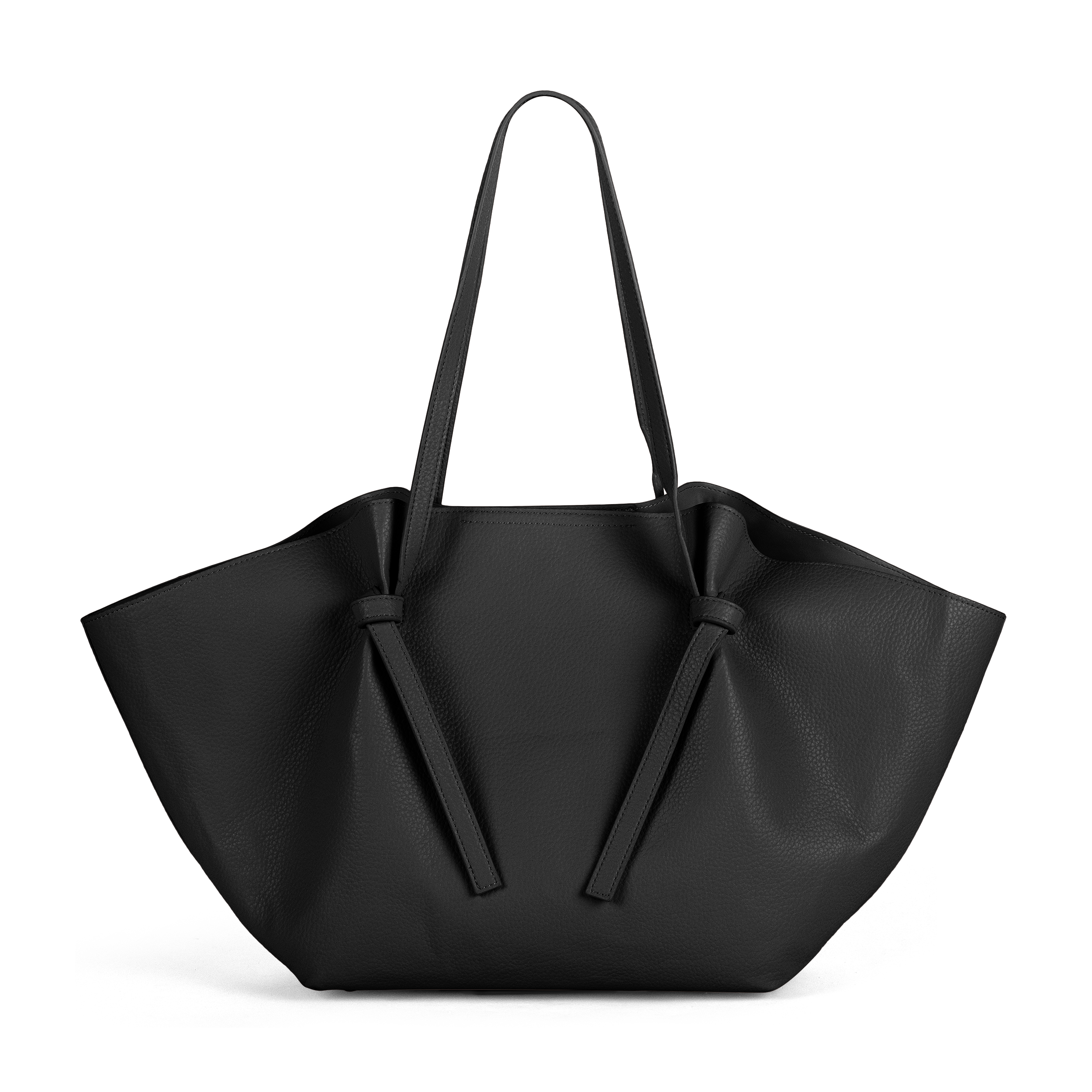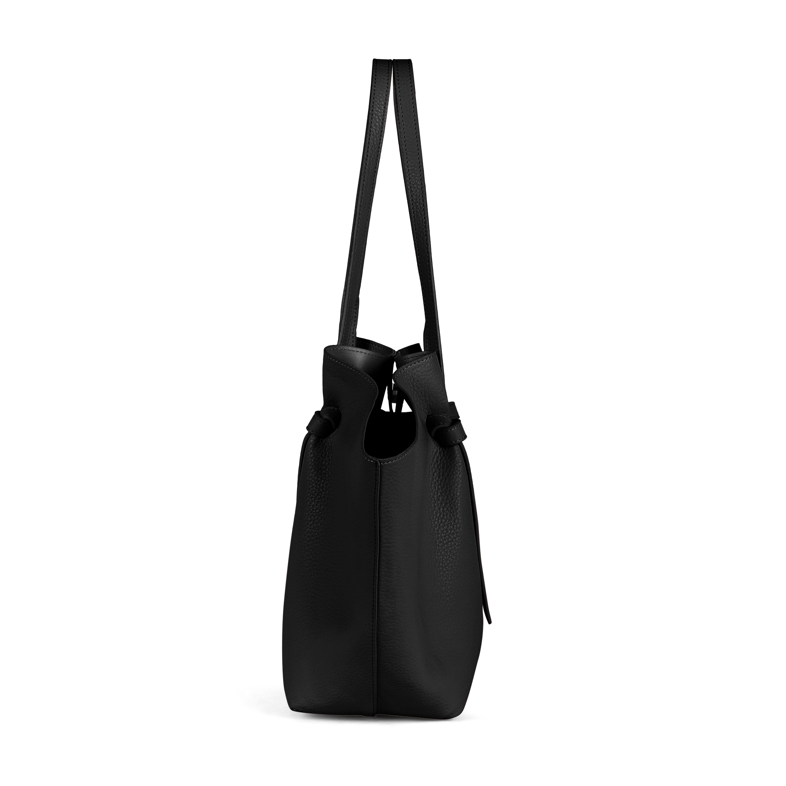 Trendiger Shopper mit trapezförmiger Silhouette, dekorativen Knotendetails und herausnehmbarer Innentasche mit Schultergurt. Stilvoll & vielseitig.