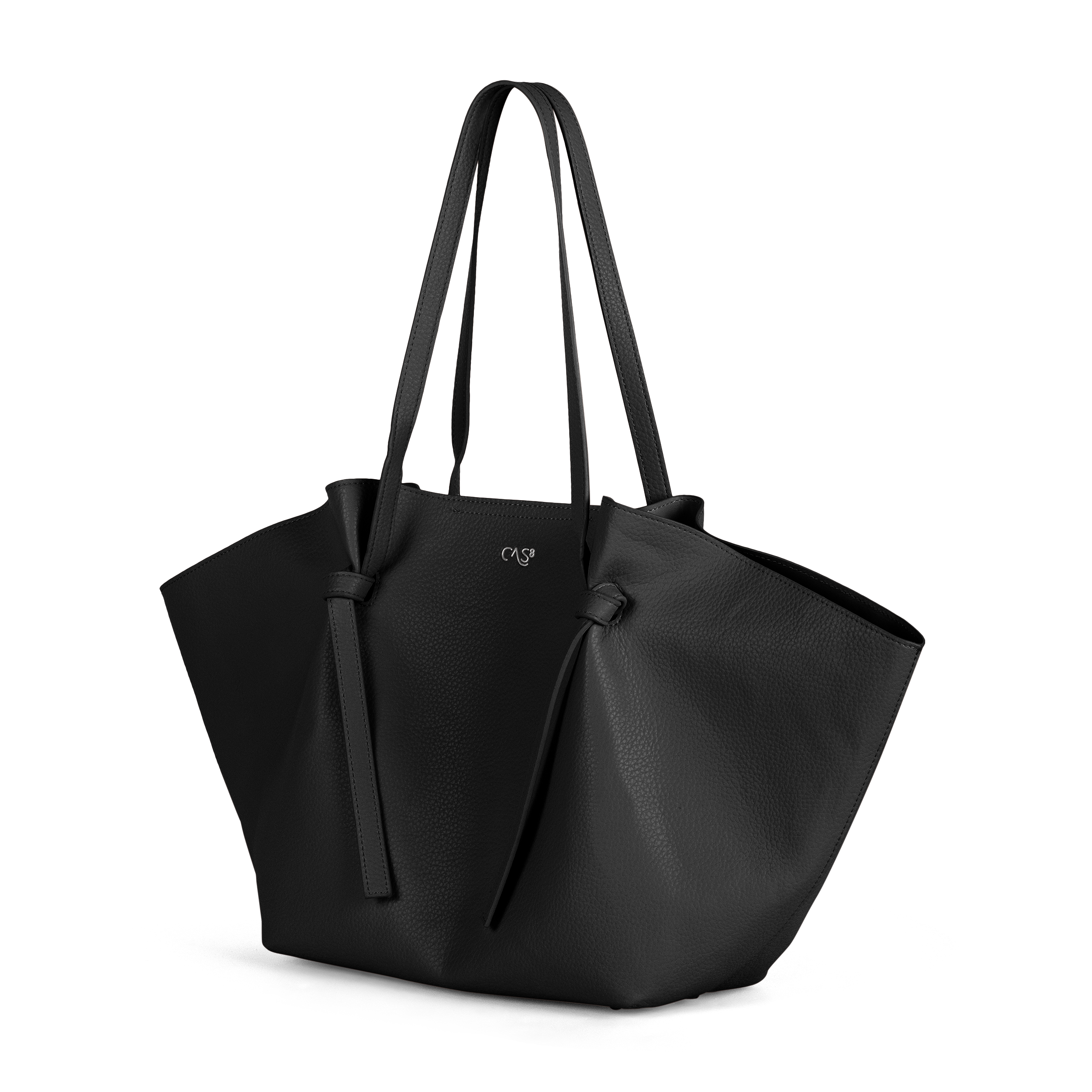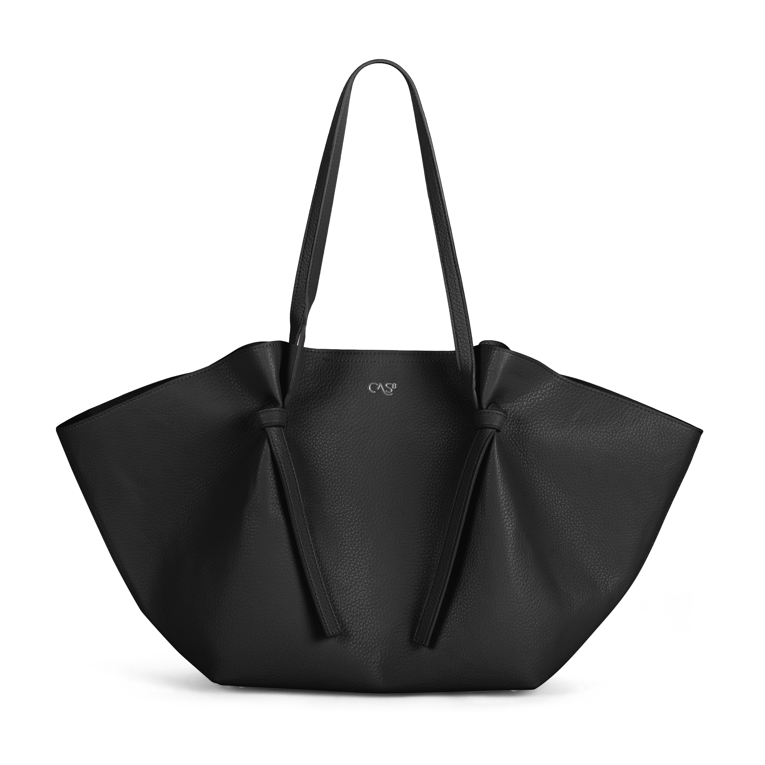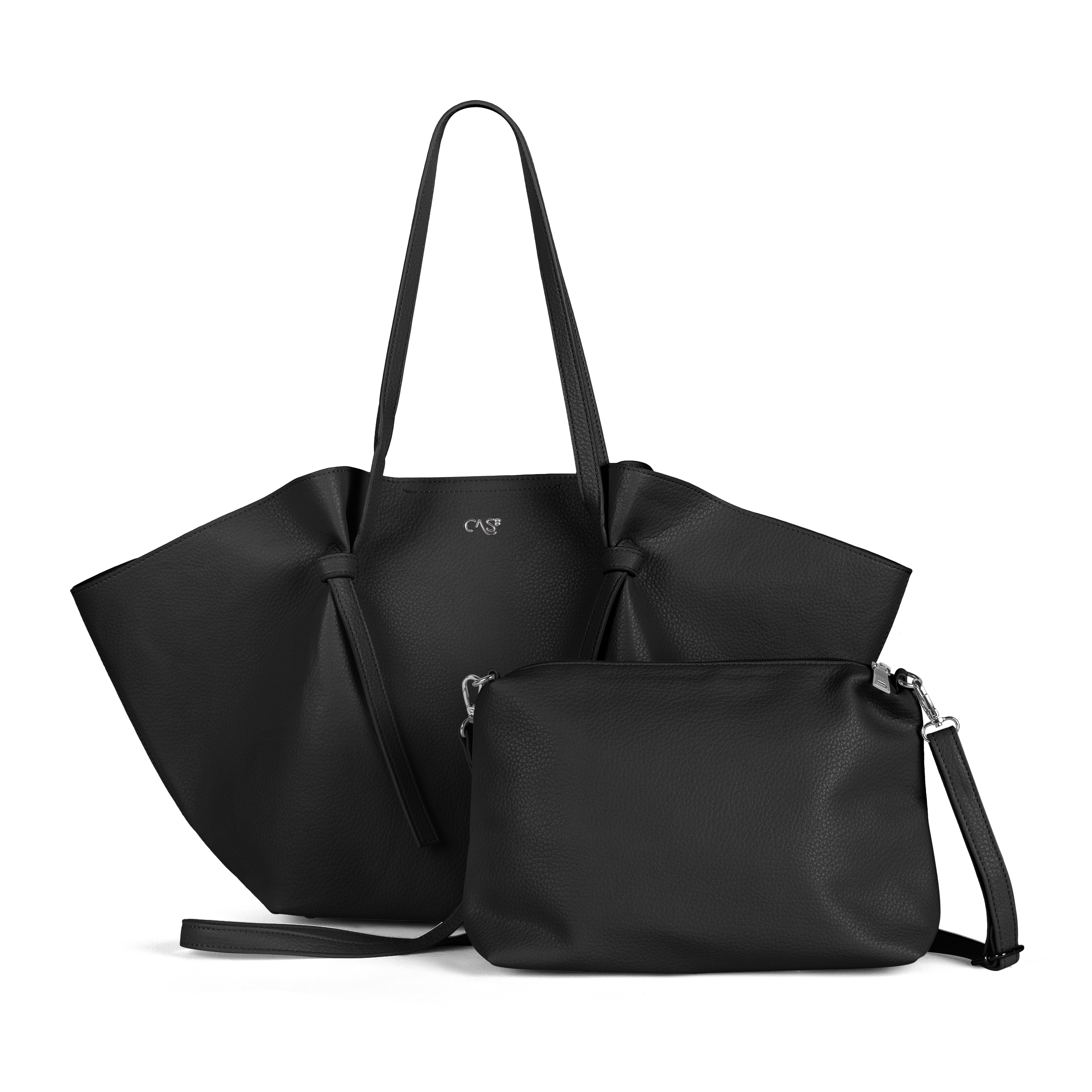 Cas8 Shopper Ella 35210 - Diese trendige Tasche (54 x 30 x 16 cm) besticht durch ihre trapezförmige Silhouette, die zeitlos und modern zugleich wirkt. Das Highlight ist die einzigartige Befestigung der Tragehenkel: Sie werden durch seitliche Schlaufen aus dem Taschenmaterial geführt und mit dekorativen Knoten versehen. Dieses Detail macht das Design lebendig und besonders. Im Inneren des Shoppers befindet sich eine weitere Tasche mit Reißverschluss, die auch einzeln mit einem abnehmbaren Schultergurt getragen werden kann. Das fein genarbte PU-Material fühlt sich angenehm an und sorgt für einen hochwertigen Eindruck. Am Boden besitzt die Tasche vier silberfarbene Füßchen für einen sicheren Stand. Das dezente Logo rundet das Gesamtbild harmonisch ab und macht die Tasche zum idealen Begleiter für Alltag, Büro oder Stadtbummel.